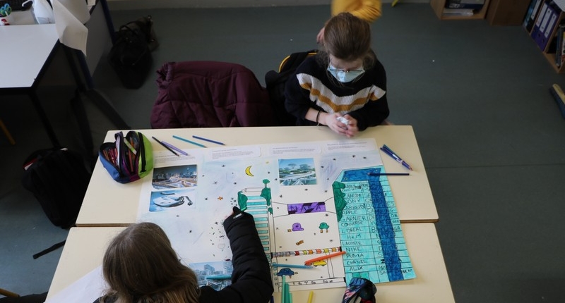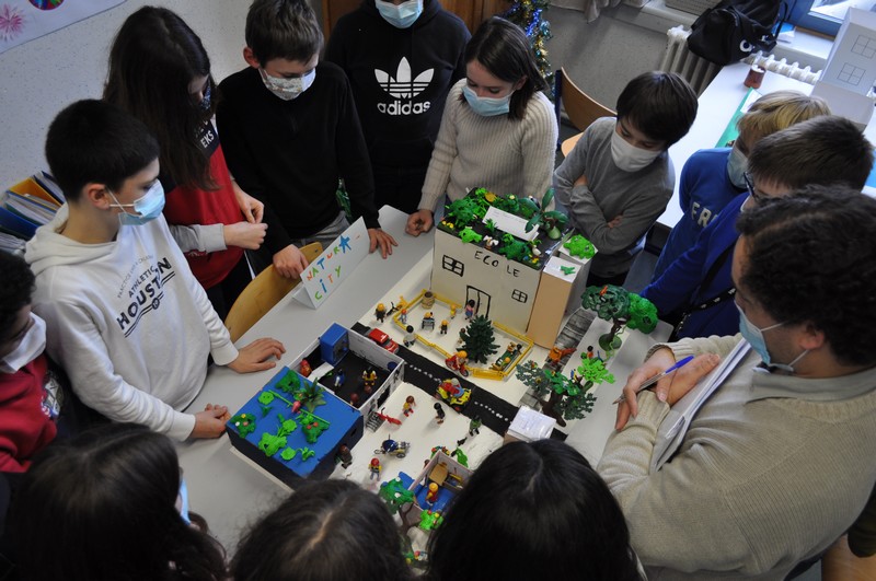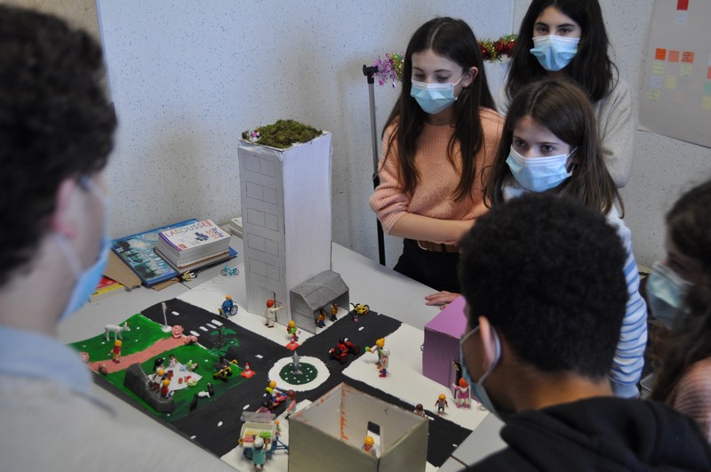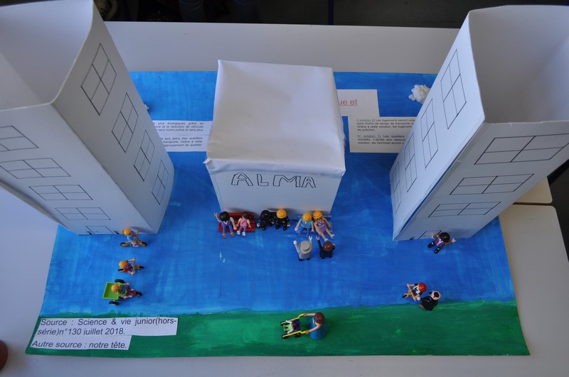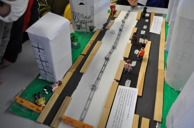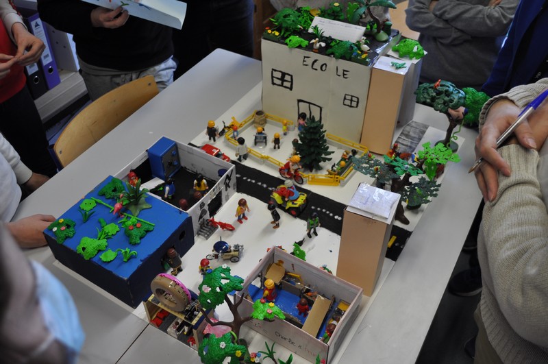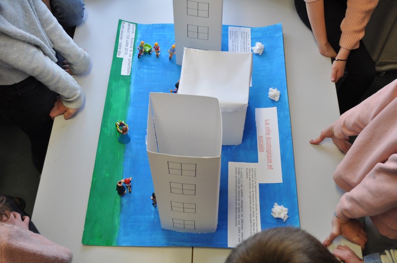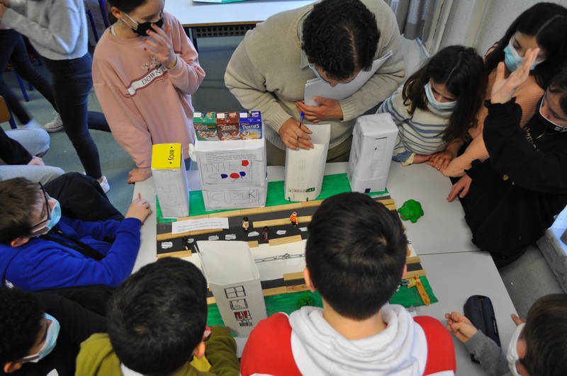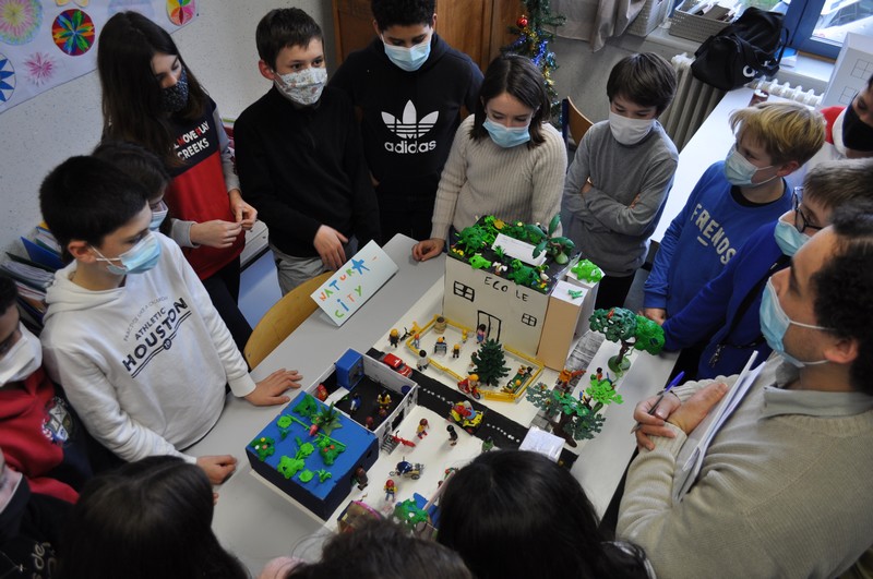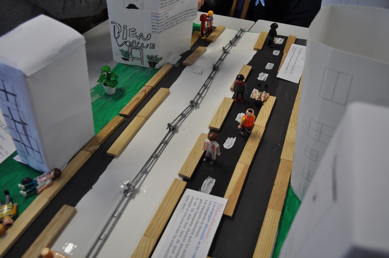 Afin de rendre compte de leurs travaux, les sixièmes pouvaient créer soit une maquette, soit un poster. La séquence s’est terminée lors d’une séance d’inauguration lors de laquelle chaque groupe a exposé devant les camarades les solutions et les choix qu’ils avaient retenu. Une chose est sûre : c’est que les futurs architectes regorgent d’idées plus originales les unes que les autres !
