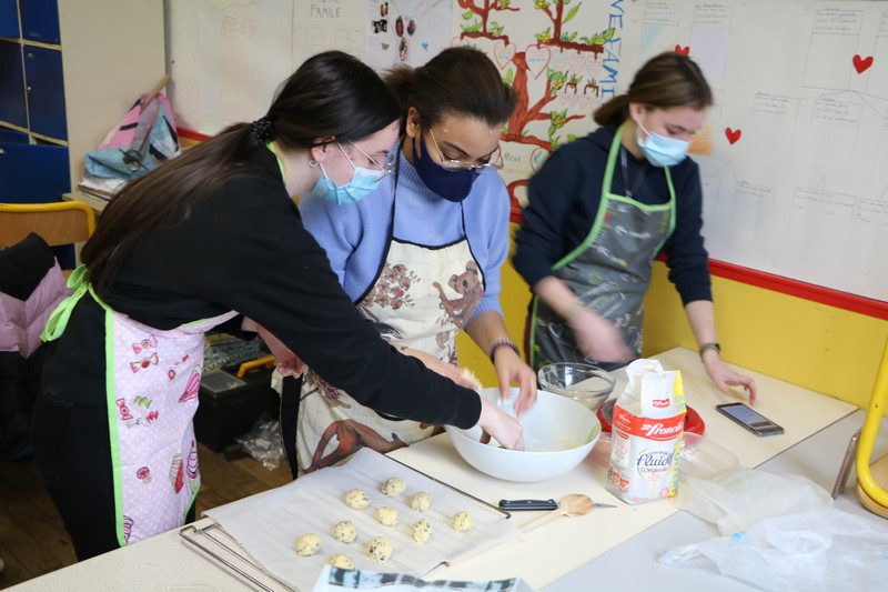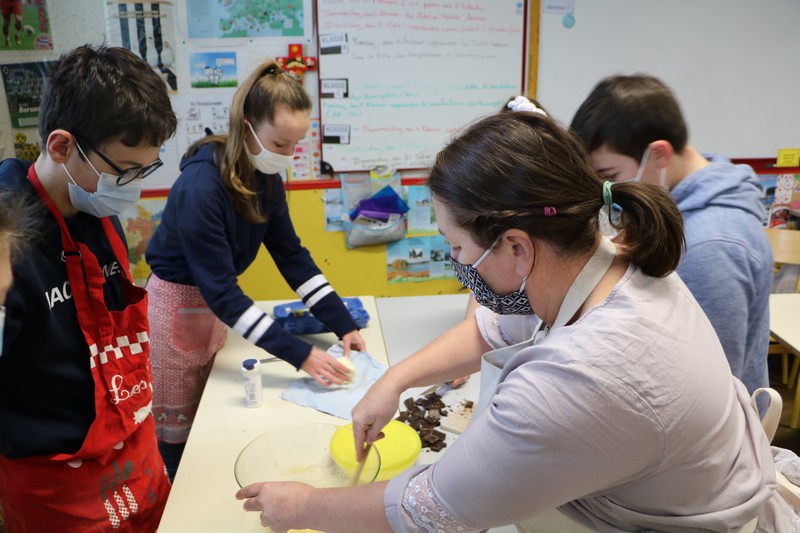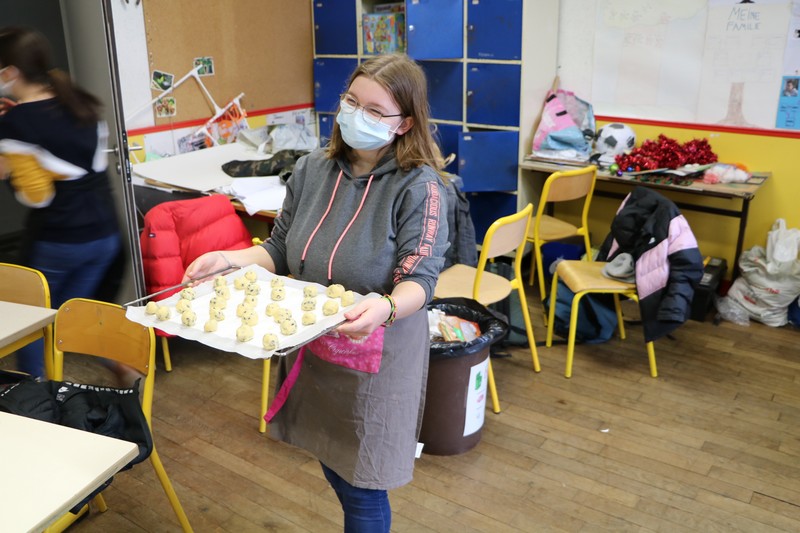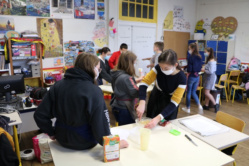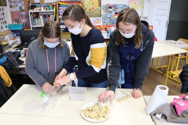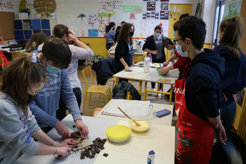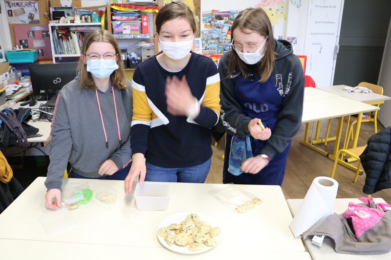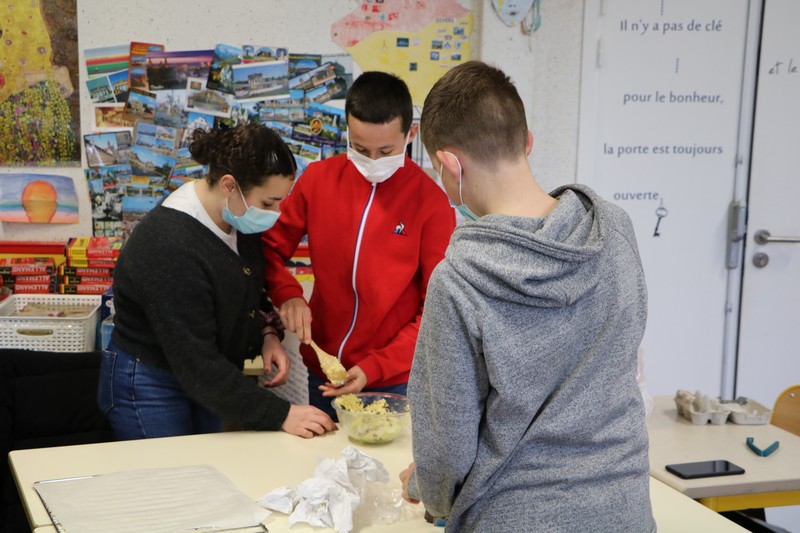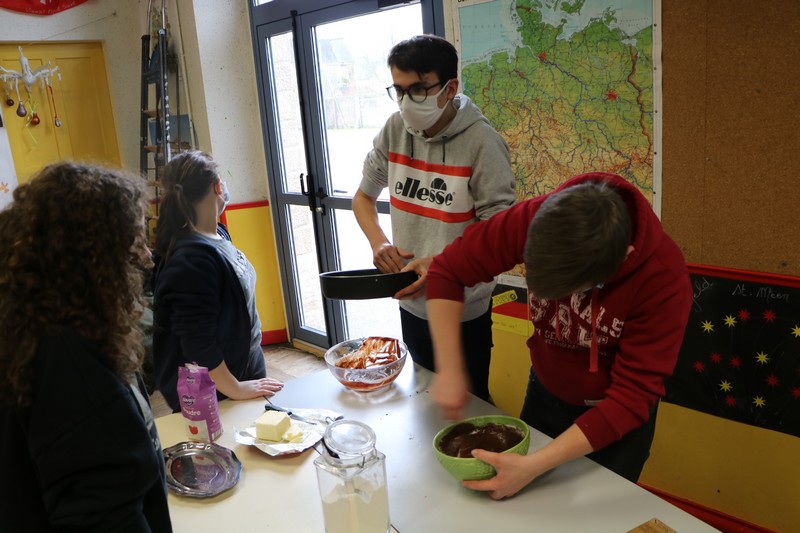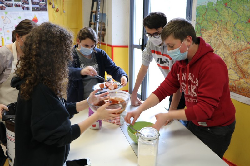 Chaque lundi, les élèves de l’atelier créatif se retrouvent pendant une heure afin de pouvoir laisser parler leur imagination. Avant les vacances, les élèves de 4e et de 3e, sous la houlette de Mme Bolloc’h, ont concoctés de bons gâteaux et autres gourmandises. Avant de pouvoir se régaler, les élèves ont eu du pain sur la planche. Certes, ils n’étaient pas tous en rang d’oignons, mais ils avaient assez de pêche pour peser, mélanger, hacher, remuer puis saupoudrer tous les ingrédients. Une fois toutes les préparation faites, les élèves ont envahis la cuisine afin de faire cuire leurs gourmandises. Tout le collège a pu ensuite profiter de la bonne odeur de pâtisserie qui s’est envolée jusqu’au deuxième étage, c’est un peu la cerise sur le gâteau !