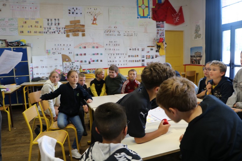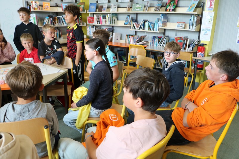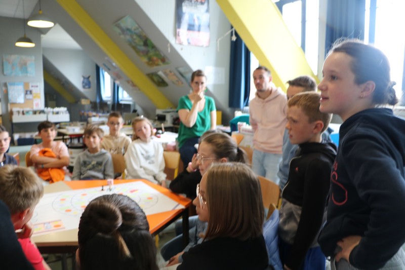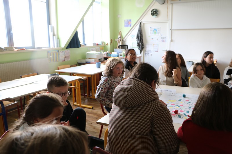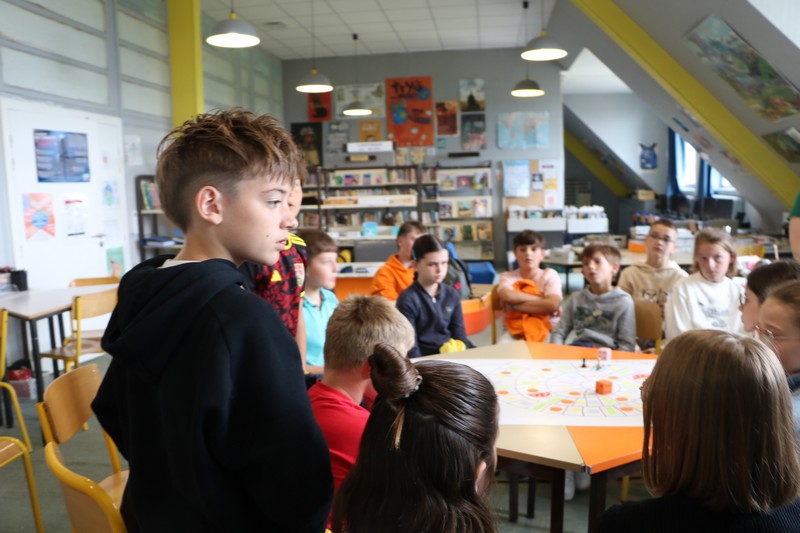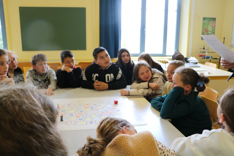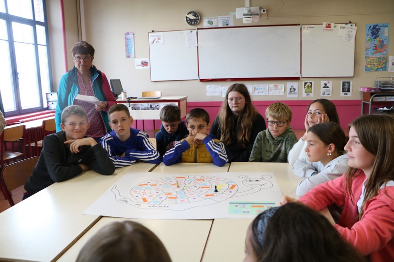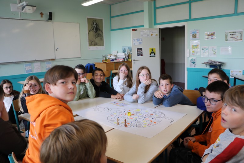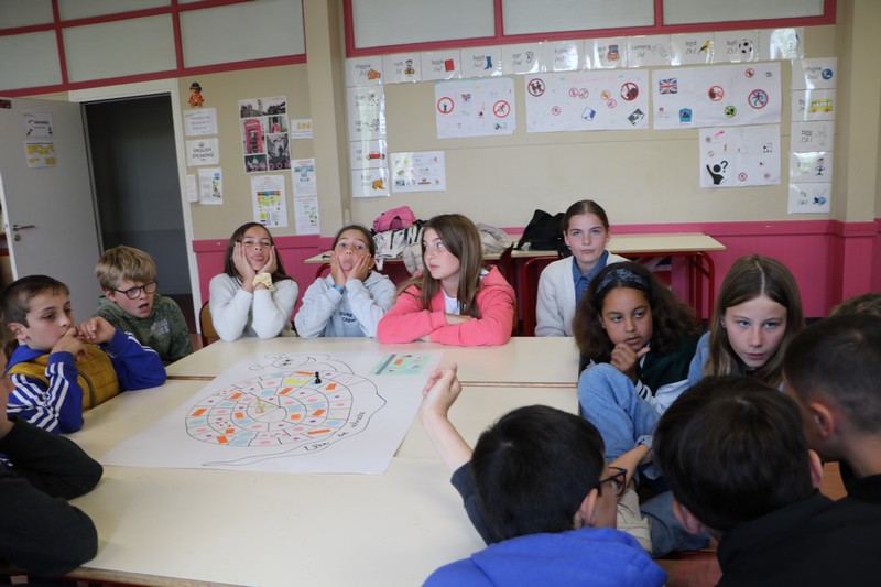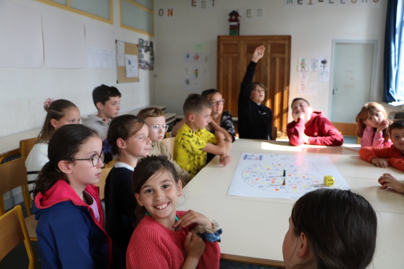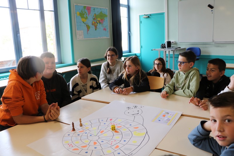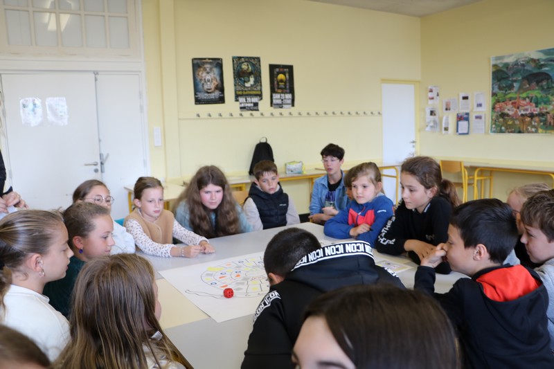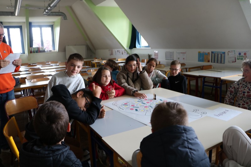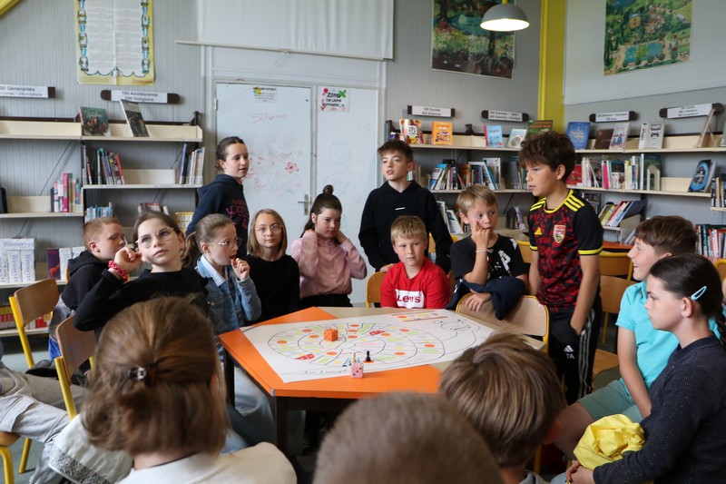 La matinée a débuté avec un grand jeu de l’oie littéraire, basé sur les ouvrages lus par les élèves tout au long de l’année. Chaque case faisait appel à leur mémoire, leur imagination et leur capacité à travailler en équipe.