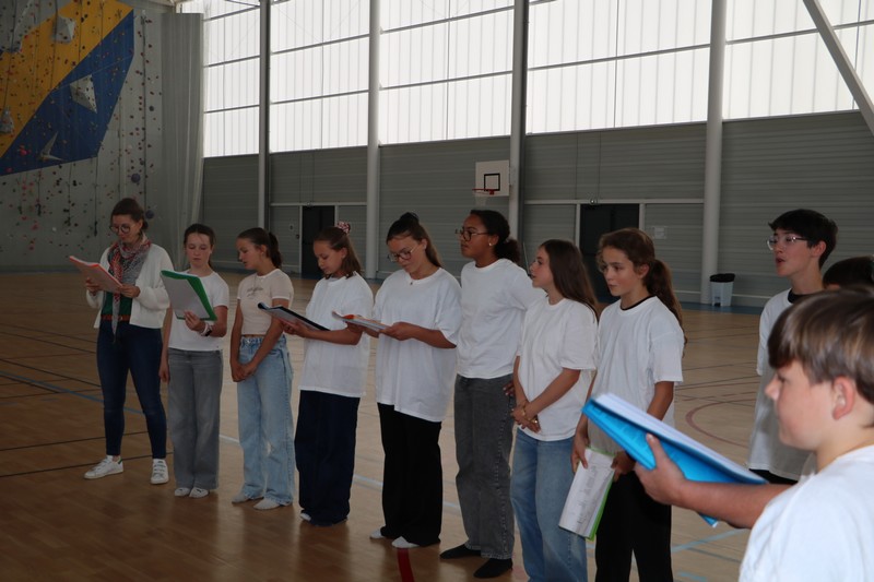 Ensuite, place au spectacle à la salle Luce Douady avec une représentation théâtrale préparée par les 6e lors de leur séjour théâtre et Nature de Sarzeau, suivie d’un moment musical porté par la chorale du collège.