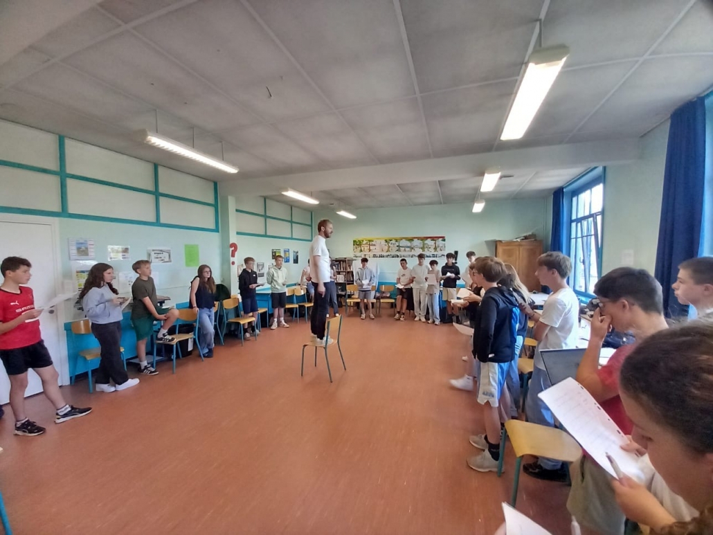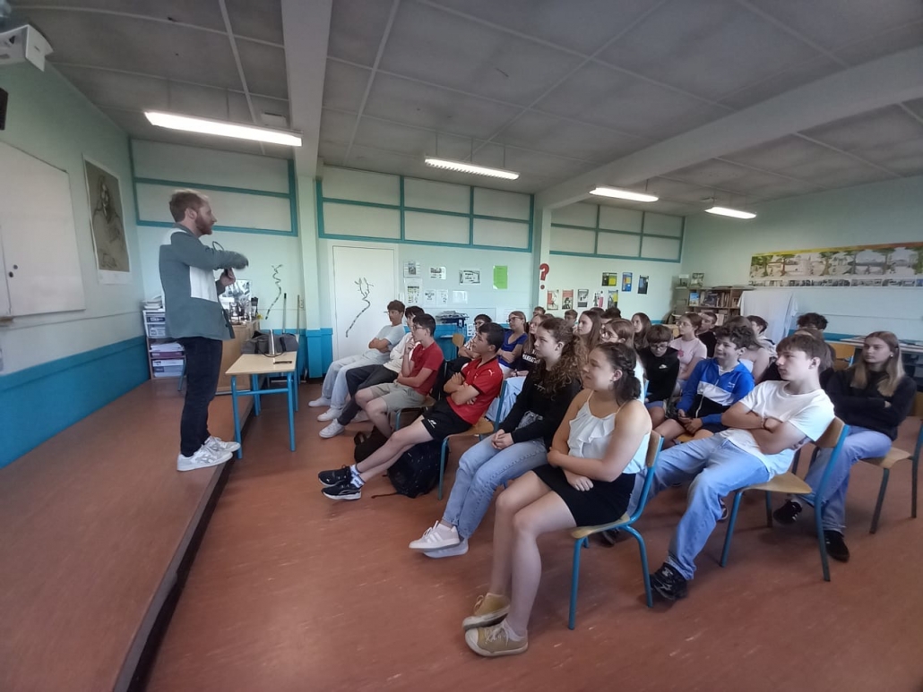 À travers des jeux d’écriture, des lectures à voix haute et des moments de partage, les élèves ont pu écrire leurs propres textes, et faire entendre leurs préoccupation. L’atelier s’est conclu par un moment fort, parfois difficile pour certains : une scène ouverte où chacun a pu déclamer son slam devant la classe. Pour beaucoup, c’était une première – et un vrai dépassement de soi ! Un exercice qui permet également de se projeter dans l’année de 3e ou les élèves devront faire preuve de persuasion et se montrer convaincants. Cette intervention s’intègre de plus dans le parcours d’éducation artistique et culturel de nos élèves.
