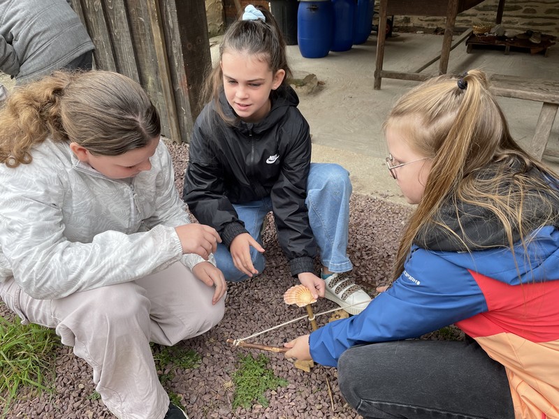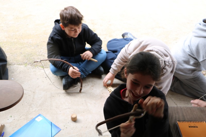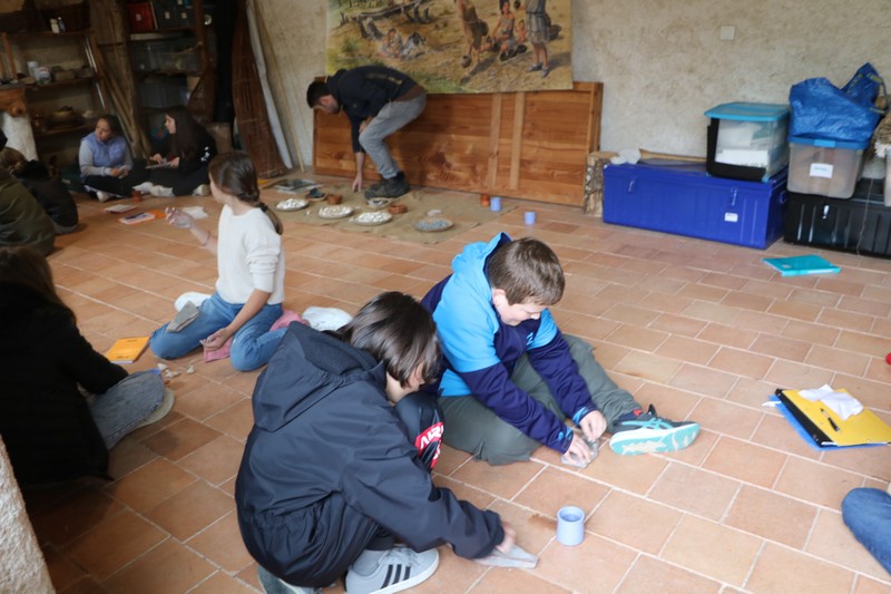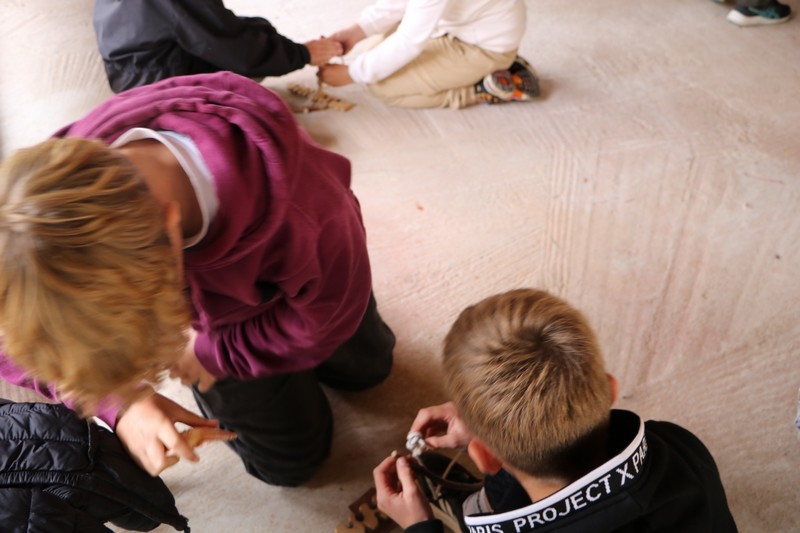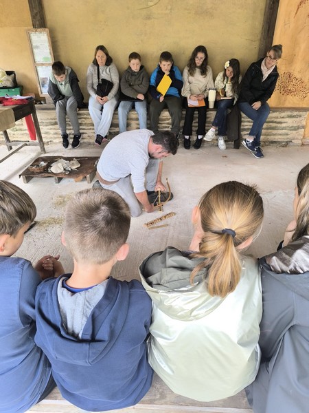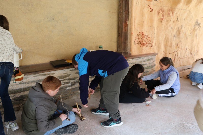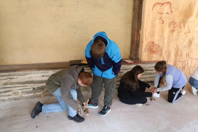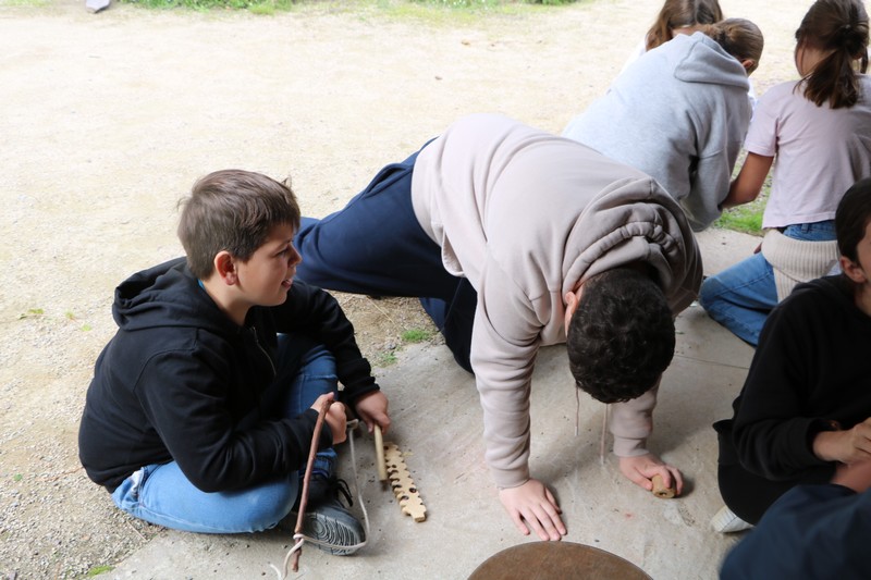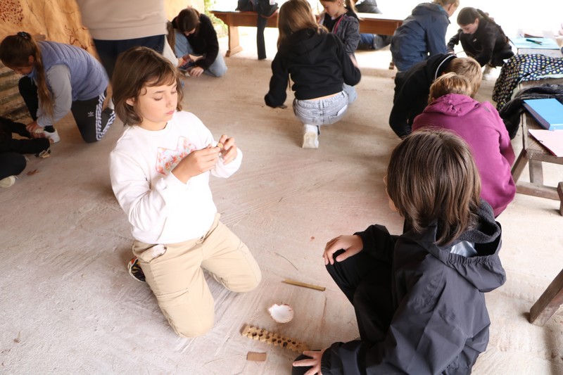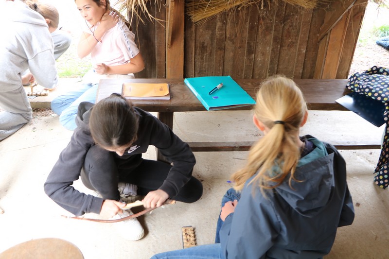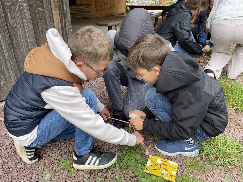 Les classes ont été divisées en deux groupes : pendant que les uns partaient explorer les mystérieux mégalithes du site, les autres s’essayaient aux ateliers préhistoriques, avant d’échanger leurs rôles l’après-midi.