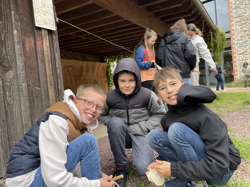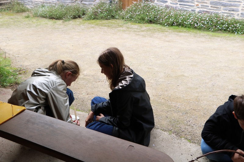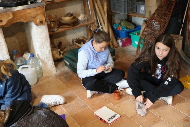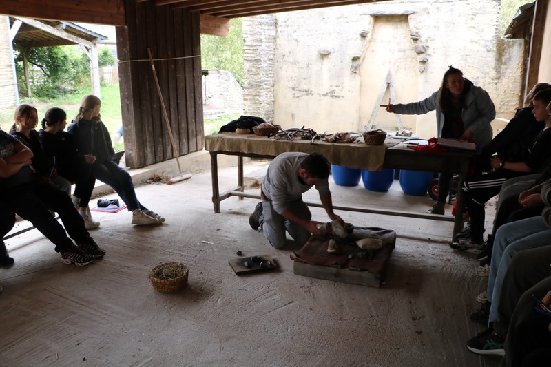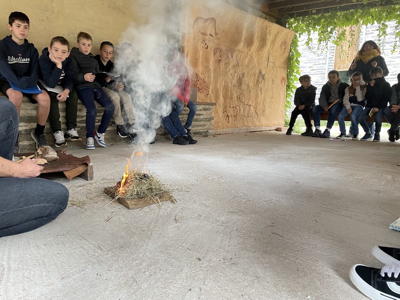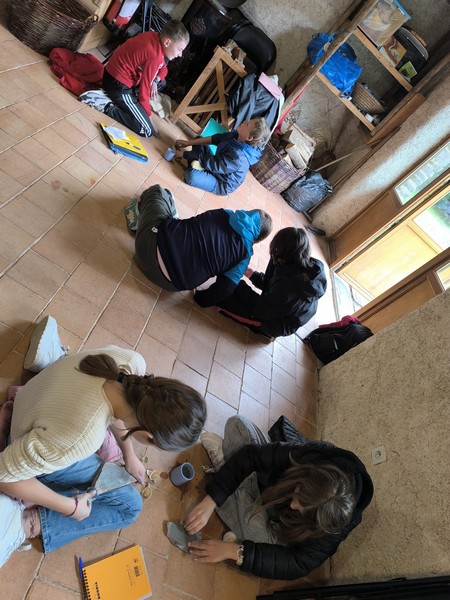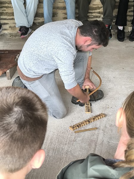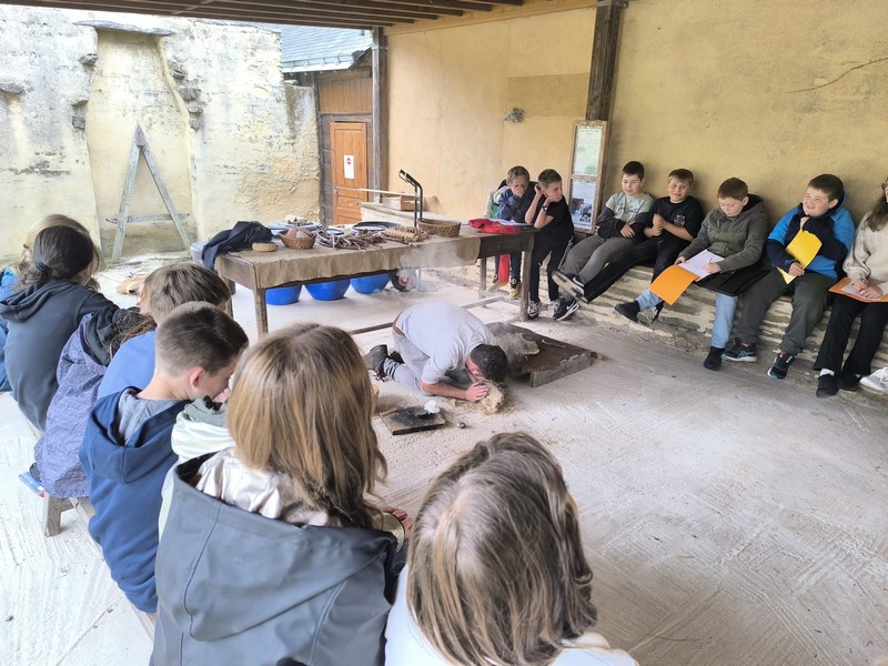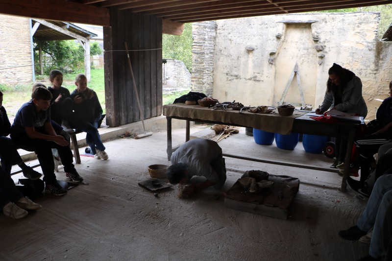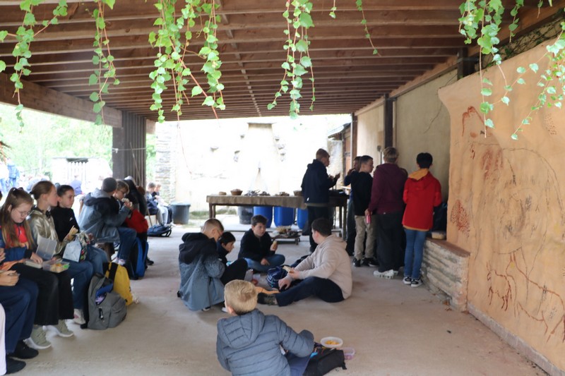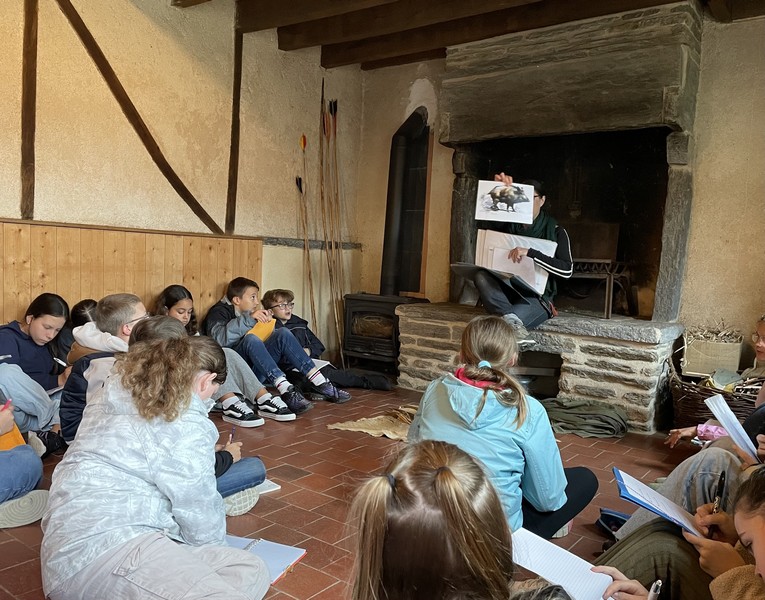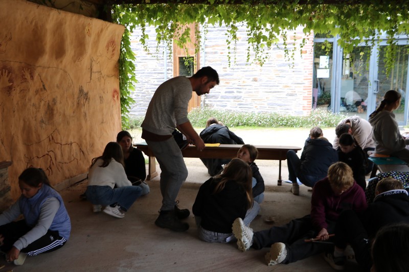 Les classes ont été divisées en deux groupes : pendant que les uns partaient explorer les mystérieux mégalithes du site, les autres s’essayaient aux ateliers préhistoriques, avant d’échanger leurs rôles l’après-midi.