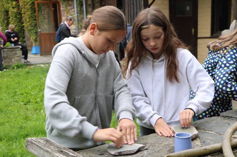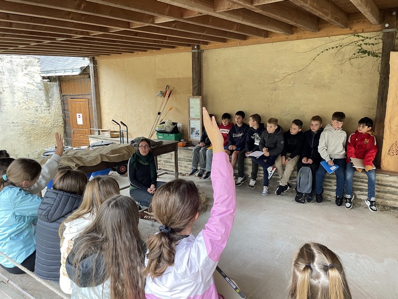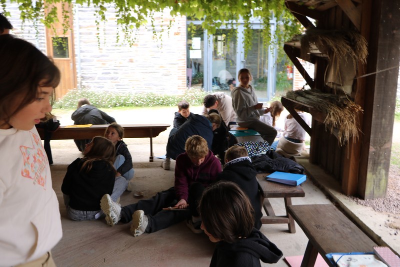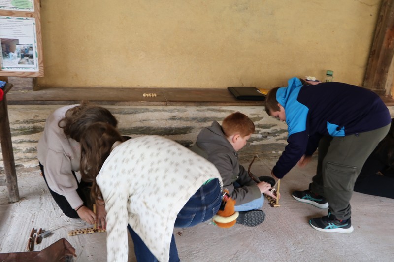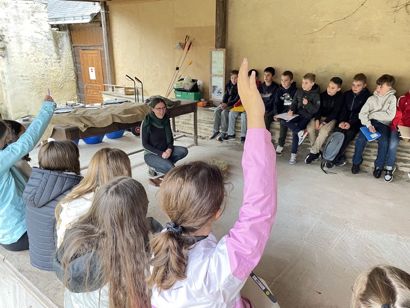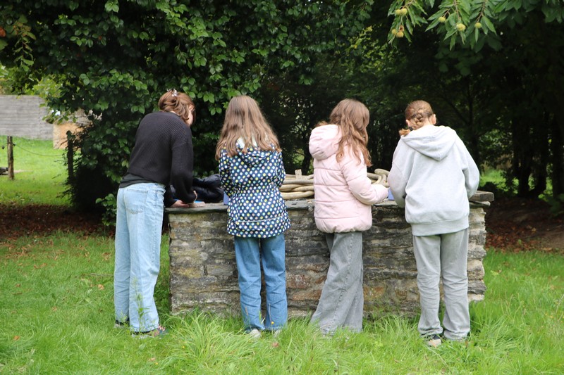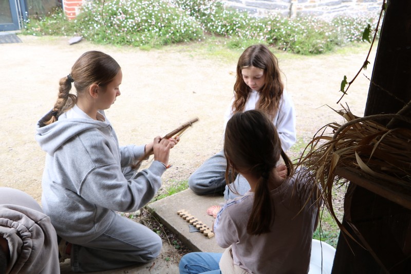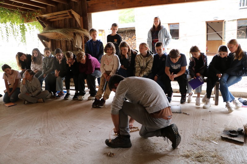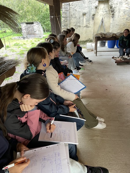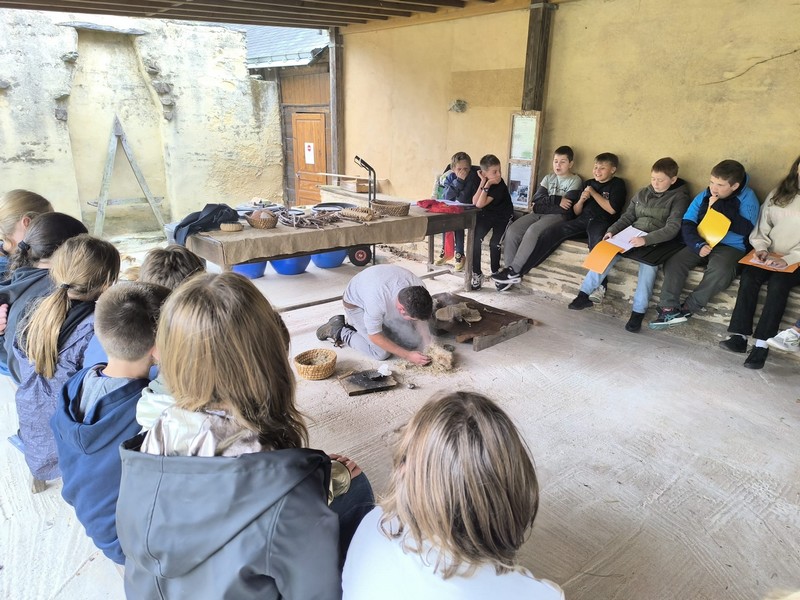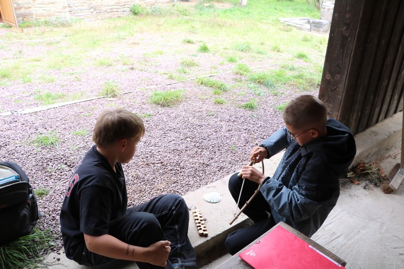 Les classes ont été divisées en deux groupes : pendant que les uns partaient explorer les mystérieux mégalithes du site, les autres s’essayaient aux ateliers préhistoriques, avant d’échanger leurs rôles l’après-midi.