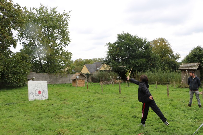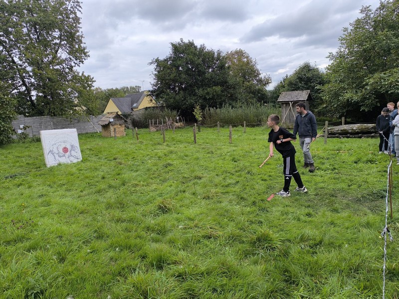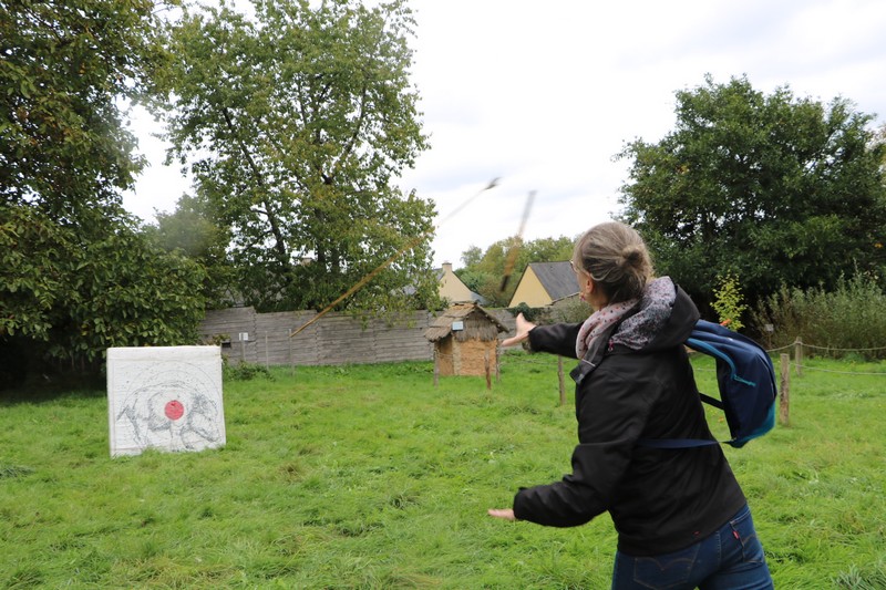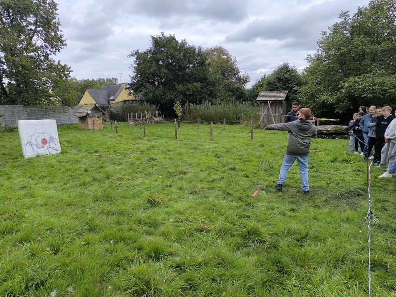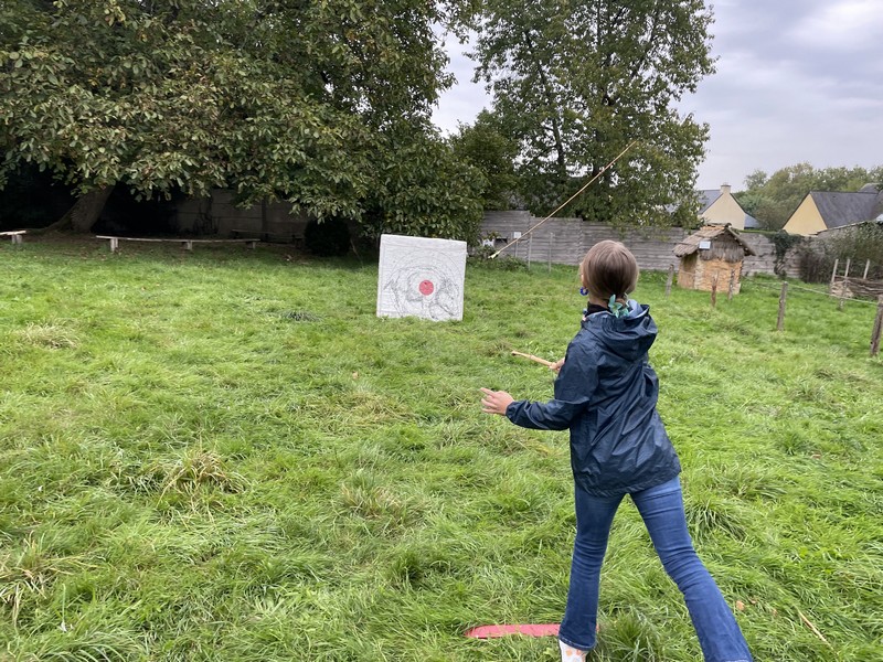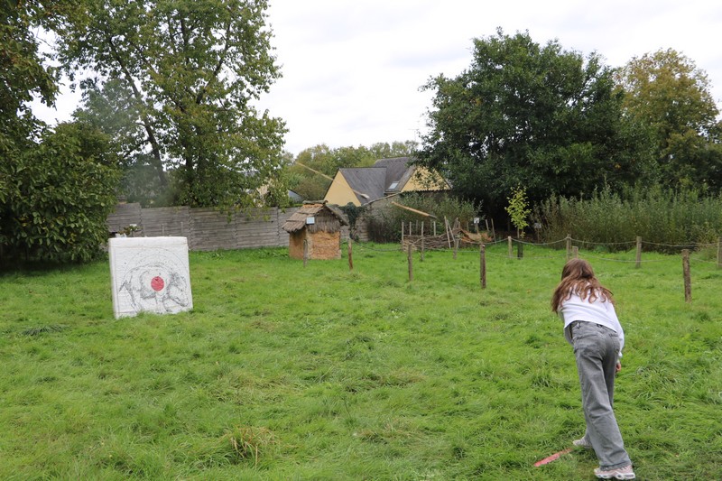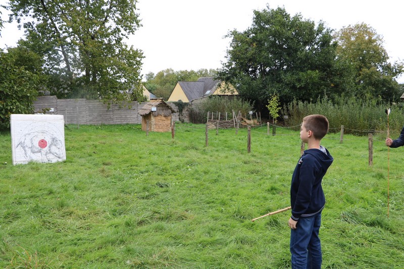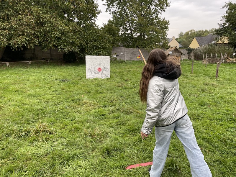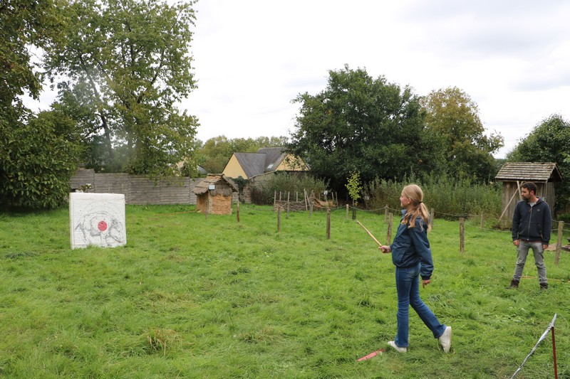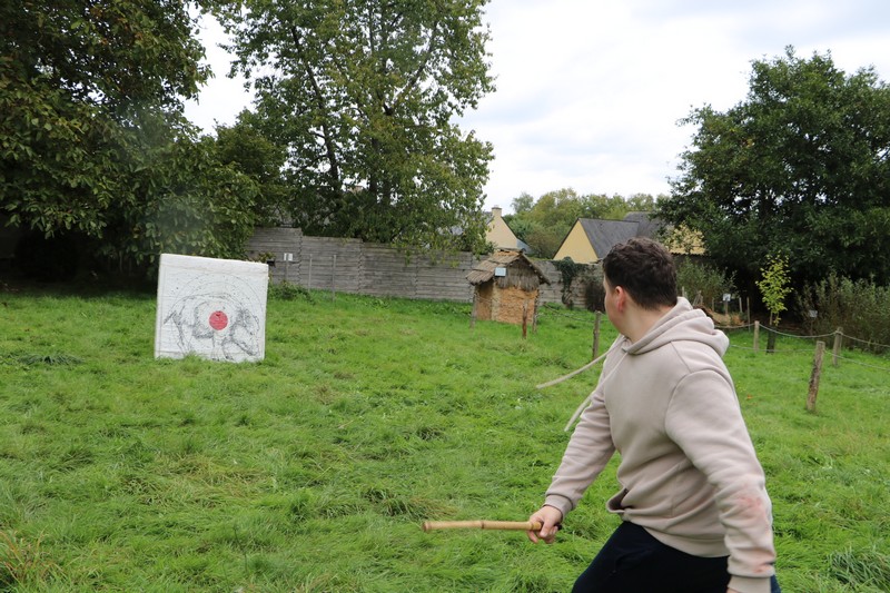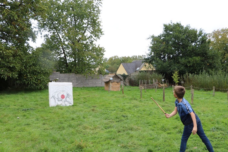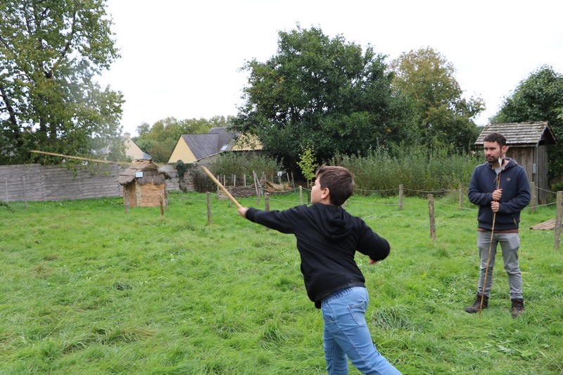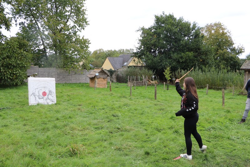 Atelier chasse — Initiation au propulseur pour lancer des sagaies : beaucoup d’enthousiasme, quelques tirs maladroits… et heureusement, aucune blessure à déclarer ! Des vocations sont par contre nées !