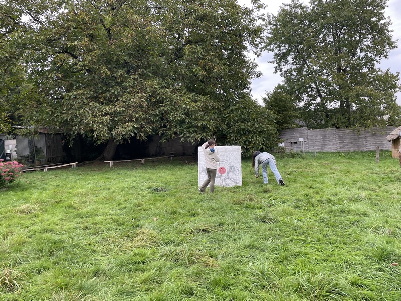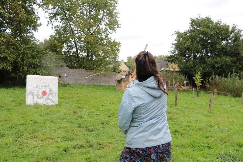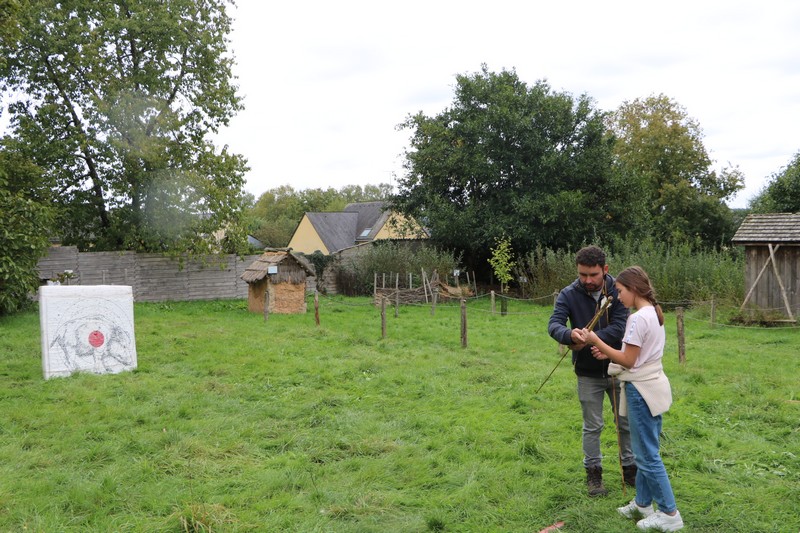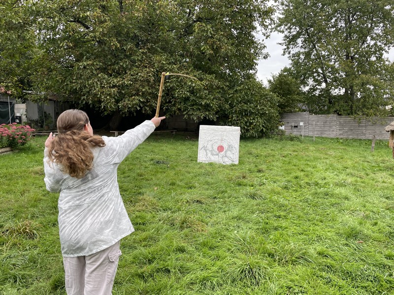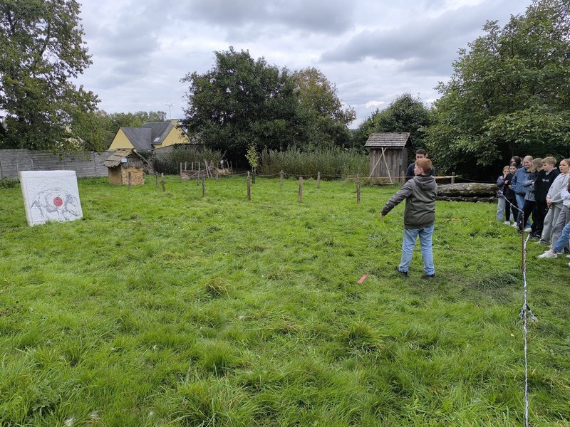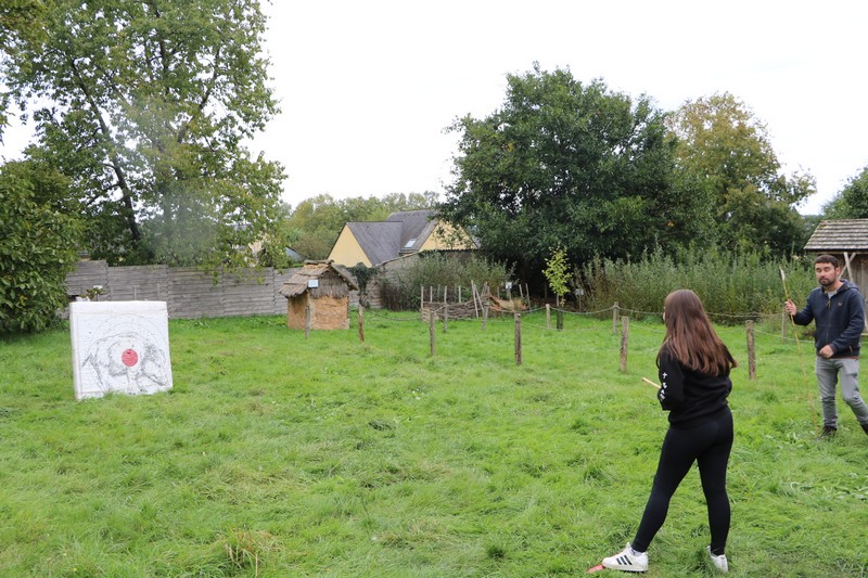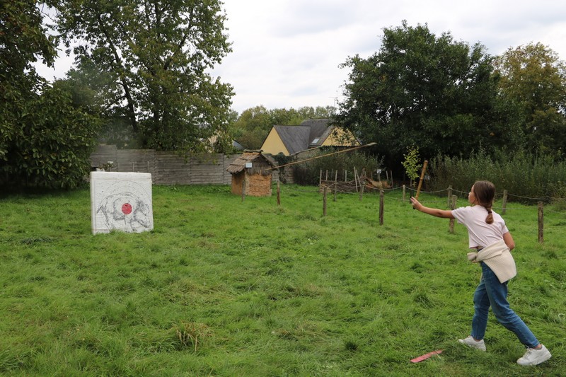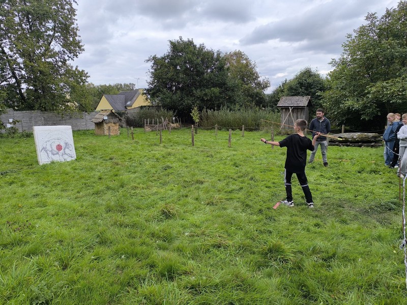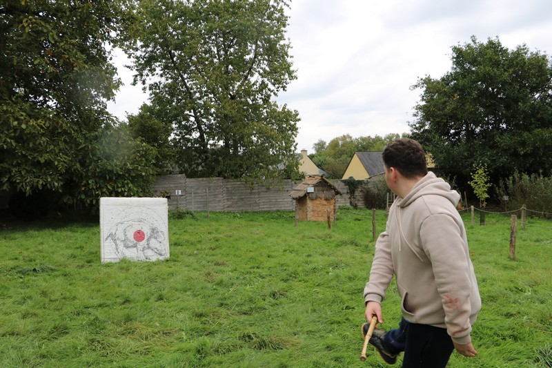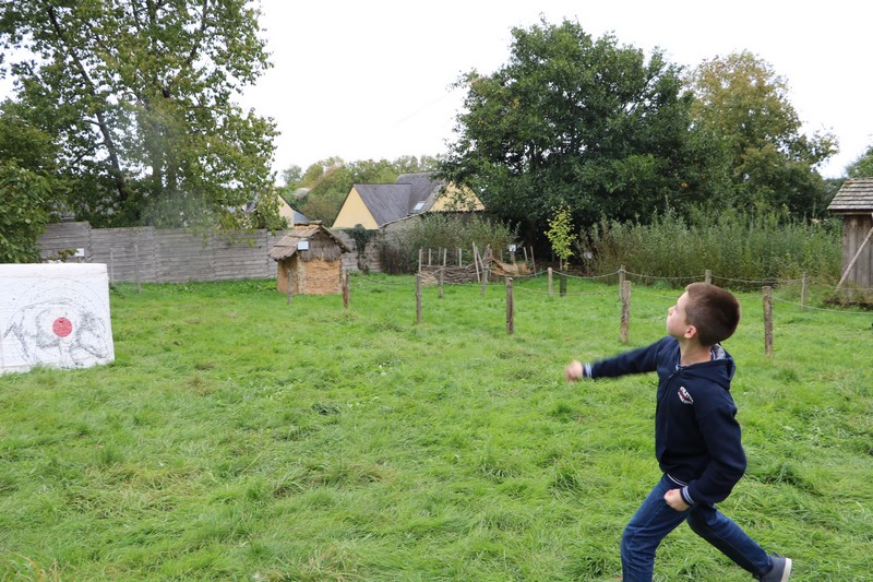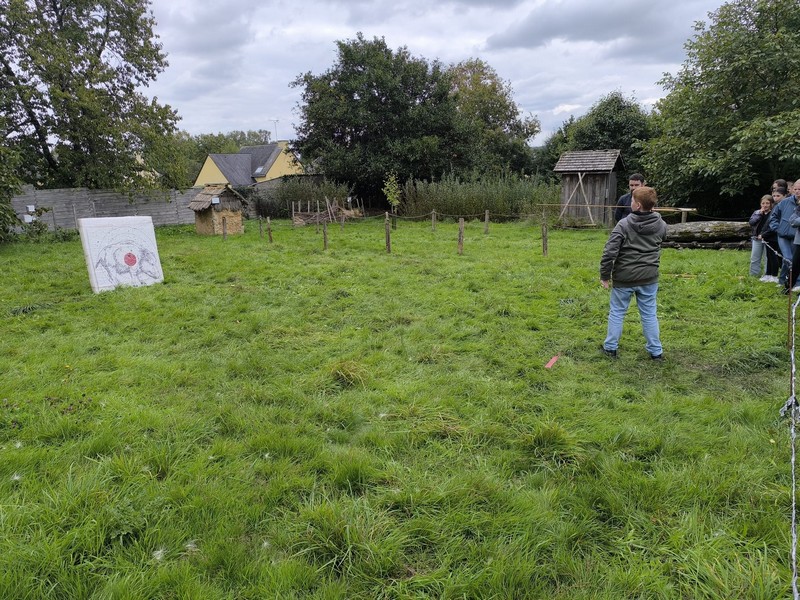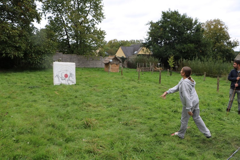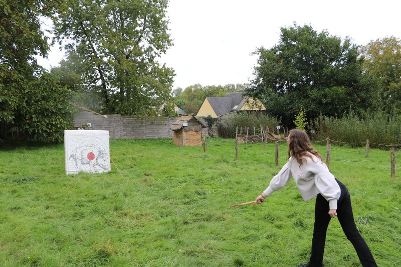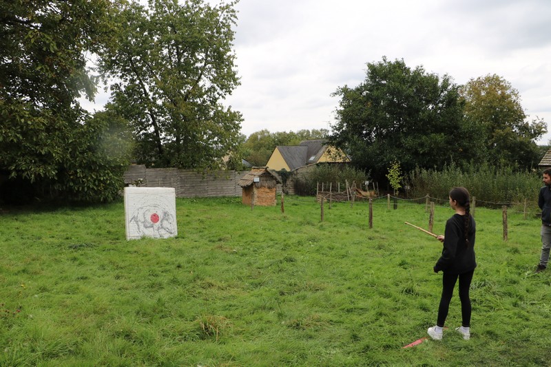 Atelier chasse — Initiation au propulseur pour lancer des sagaies : beaucoup d’enthousiasme, quelques tirs maladroits… et heureusement, aucune blessure à déclarer ! Des vocations sont par contre nées !