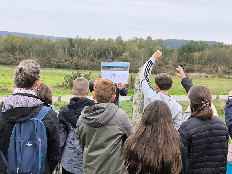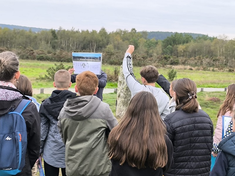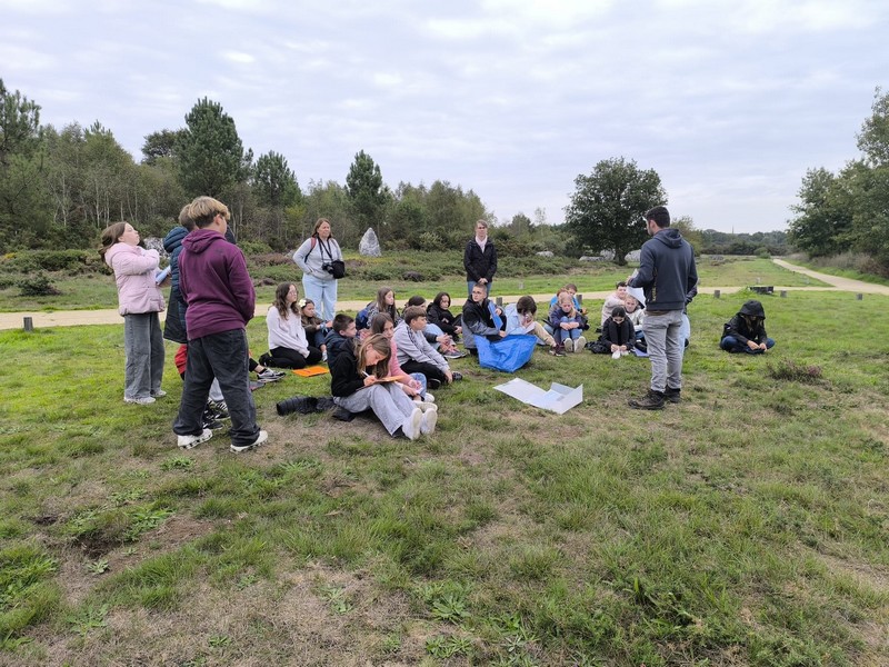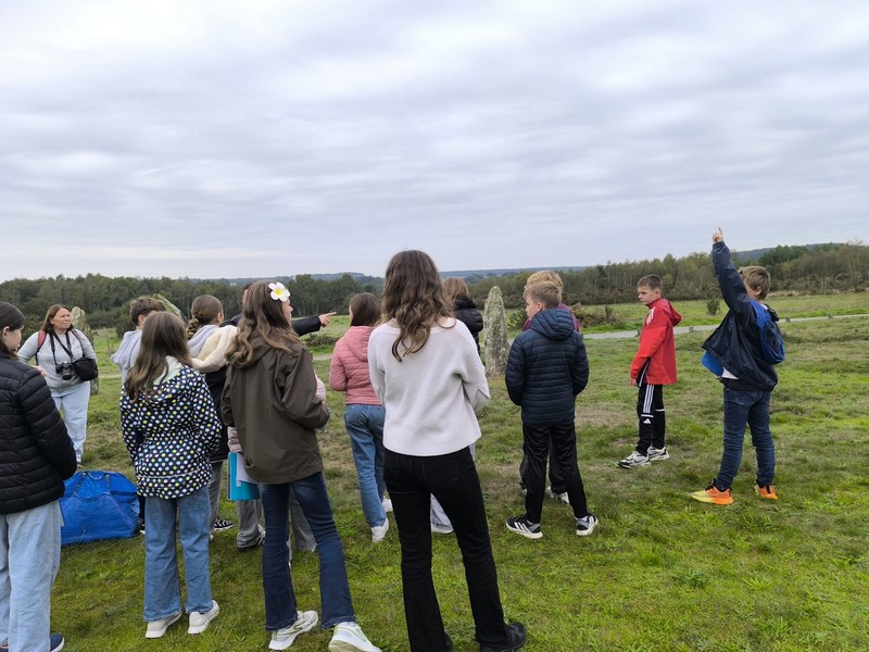 Le vendredi 26 septembre, les élèves de 6e ont remonté le temps… direction la Préhistoire ! Encadrés par Mme Bondu, professeure d’histoire, et accompagnés de Mme Chambon, Mme Coché, M. Le Dreff et Mme Le Pioufle, ils ont passé la journée sur le site mégalithique des Landes de Cojoux, à Saint-Just.