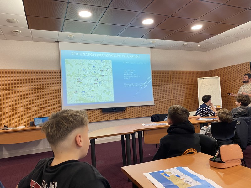 Sur place, le groupe a été chaleureusement accueilli par Julie, animatrice de la Communauté de communes, ainsi que par Nicolas et Mélodie, professionnels travaillant pour Véolia, qui ont partagé leur expertise et répondu aux nombreuses questions des élèves.