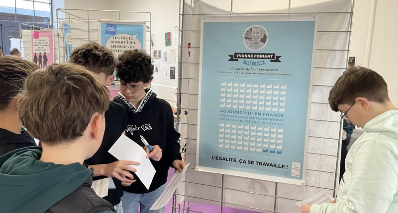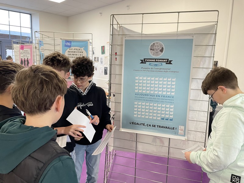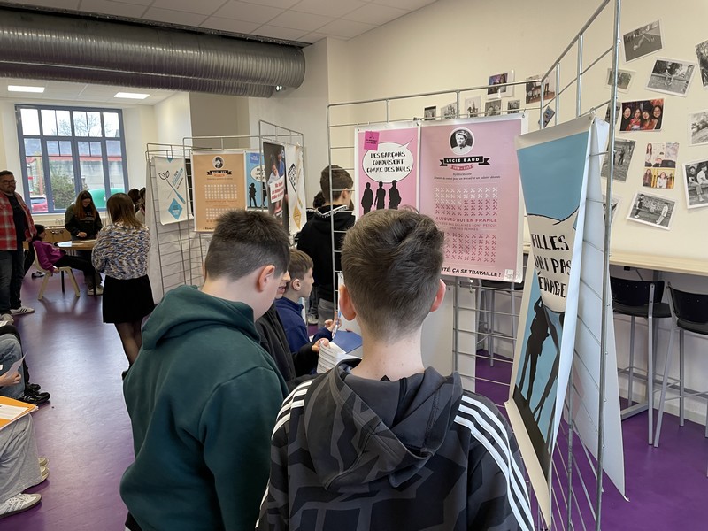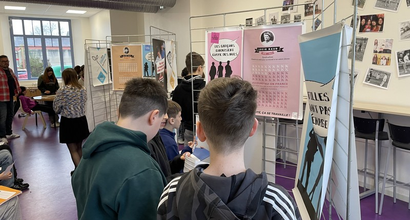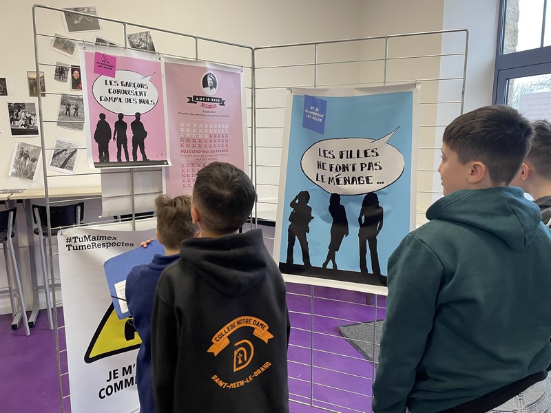 Mardi 10 mars, le foyer du collège s’est à nouveau transformé en hall d’exposition. Grâce au service jeunesse de la Communauté de Communes Saint-Méen Montauban, cette intervention, reconduite cette année, a une nouvelle fois permis d’ouvrir le dialogue autour d’un thème essentiel : l’égalité filles-garçons.