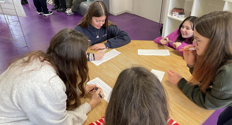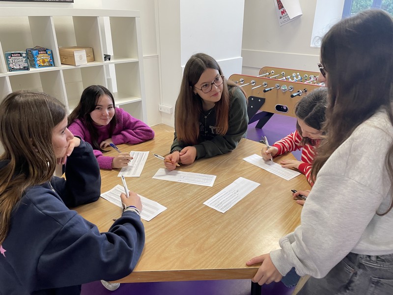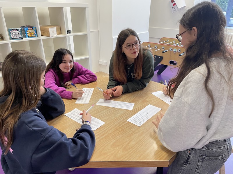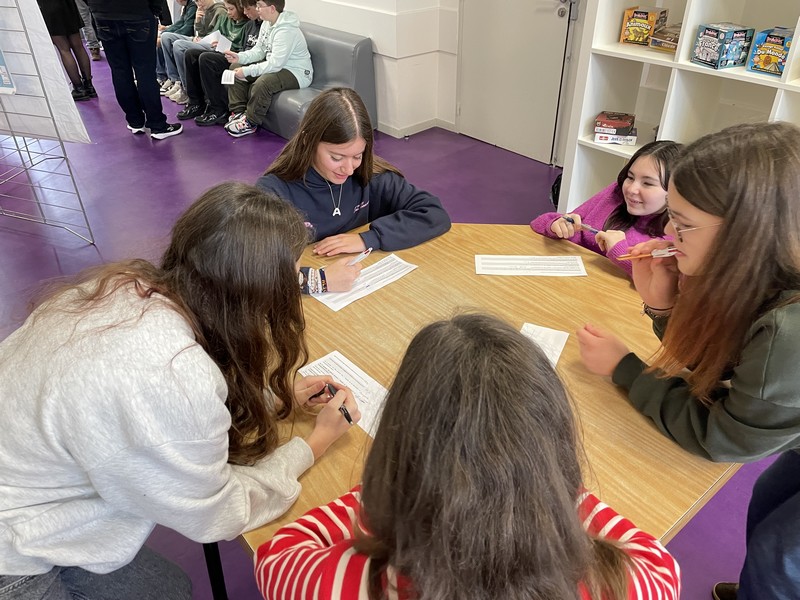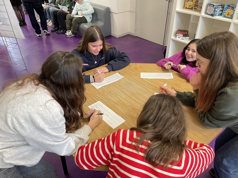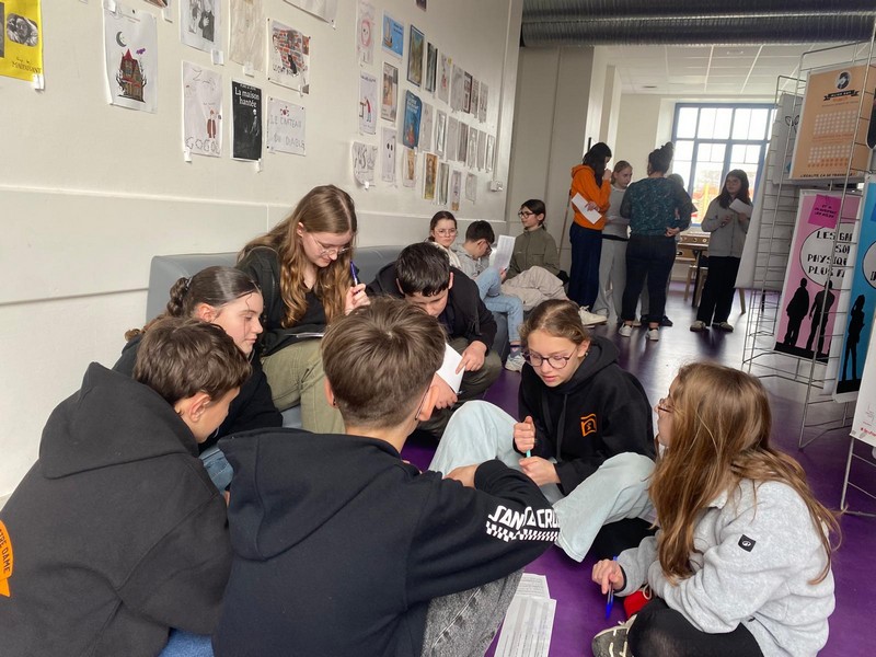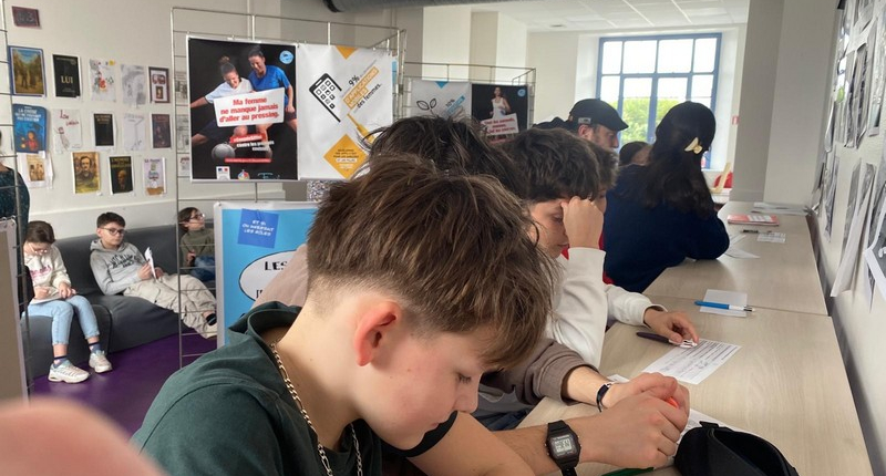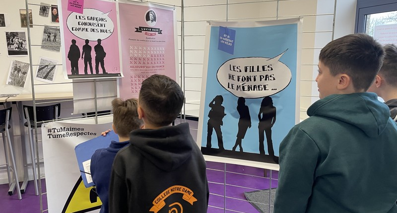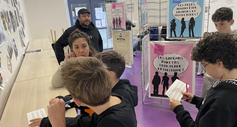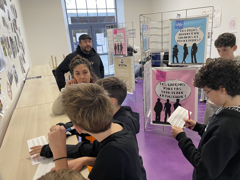S’en est suivi un temps d’échange en petits groupes, favorisant la prise de parole de chacun. En s’appuyant sur les supports de l’exposition, les élèves ont progressivement partagé leurs propres représentations. Avec leurs mots, ils ont mis en évidence qu’il n’existe pas de compétences « pour les filles » et d’autres « pour les garçons ».