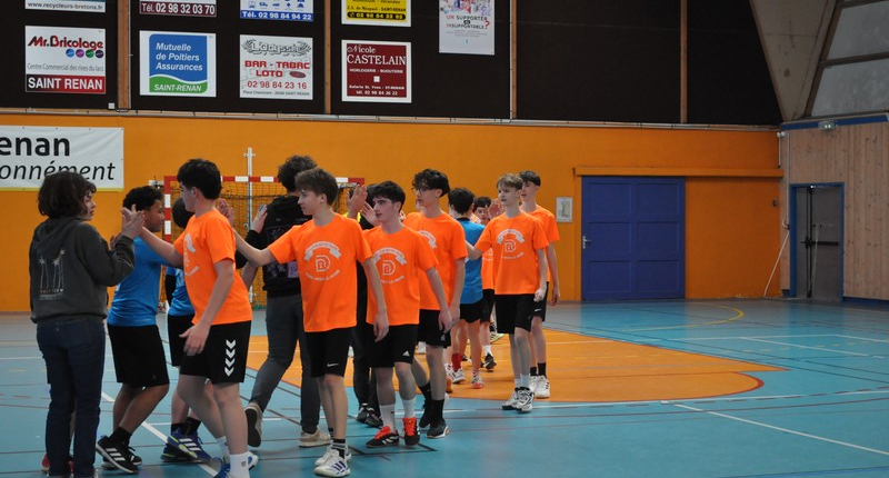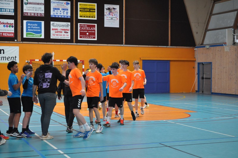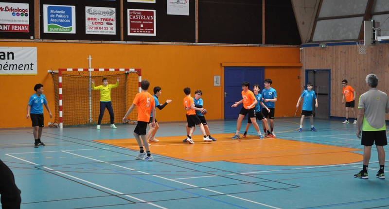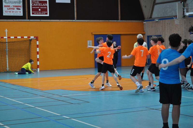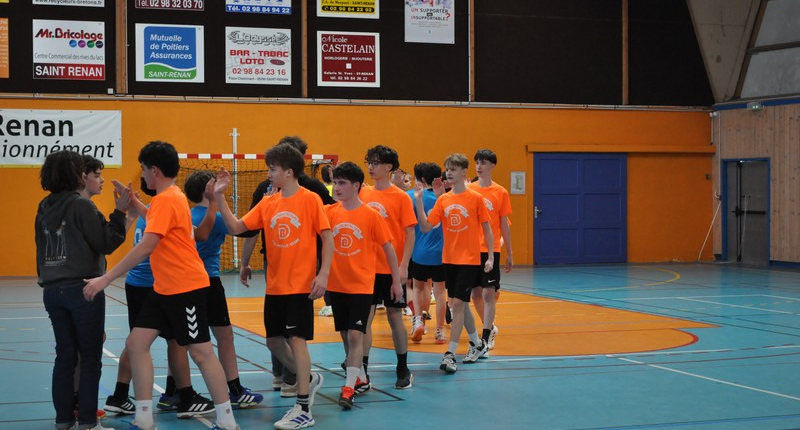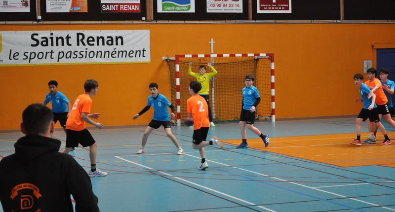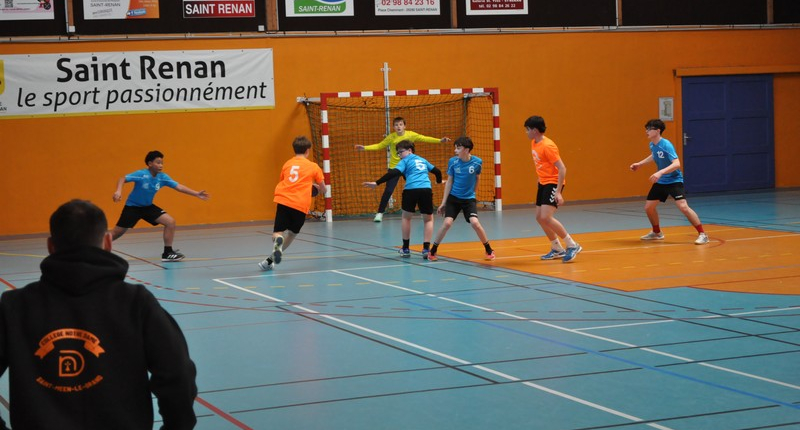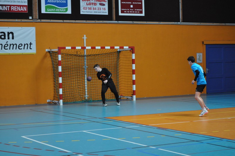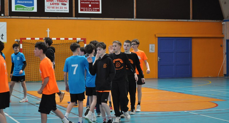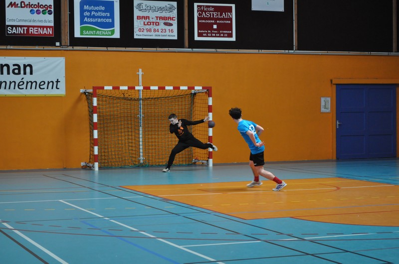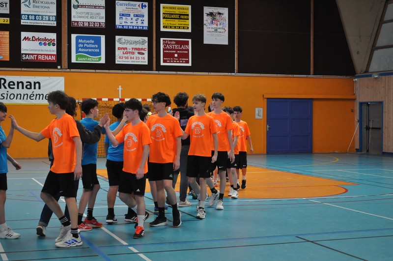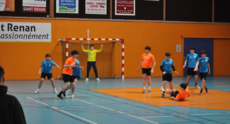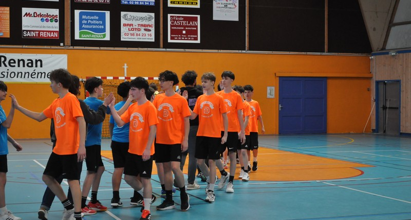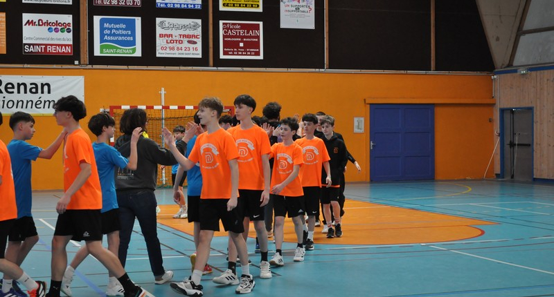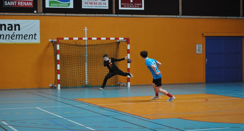 L’après-midi débute dans une nouvelle salle, offrant d’excellentes conditions de jeu. Mais le niveau monte encore d’un cran. Face à l’équipe de Landivisiau Saint-Joseph de la Salle, nos handballeurs affrontent un adversaire plus expérimenté et s’inclinent logiquement 7 à 17.