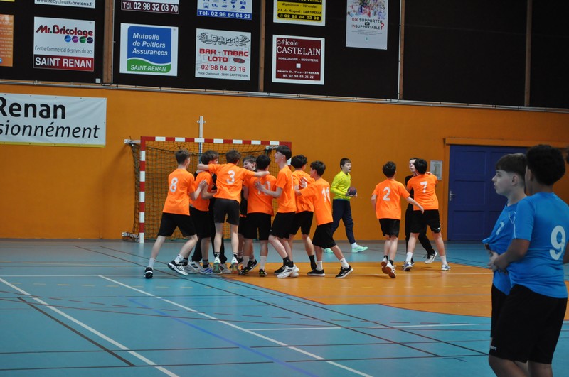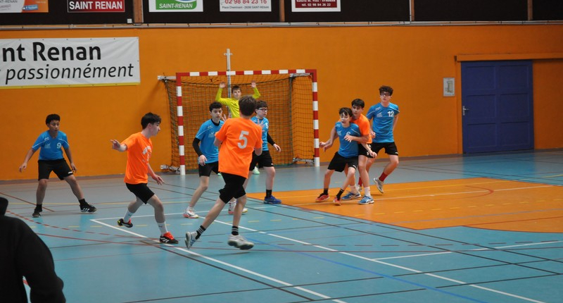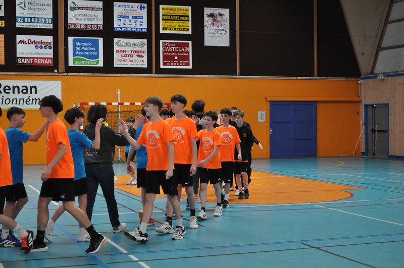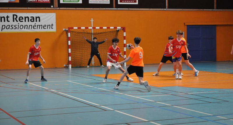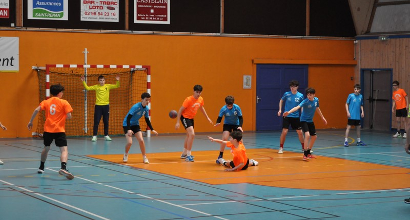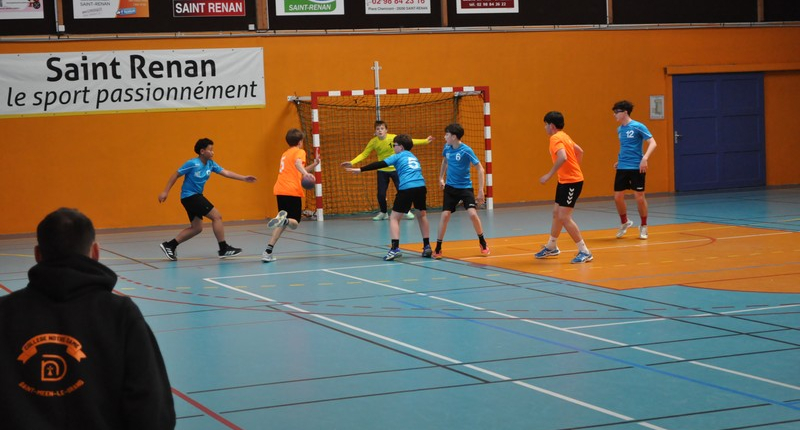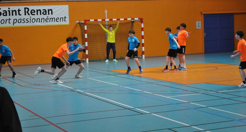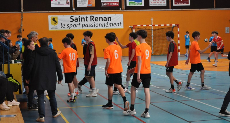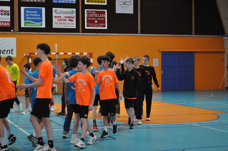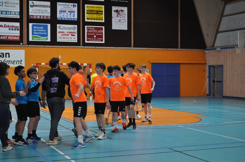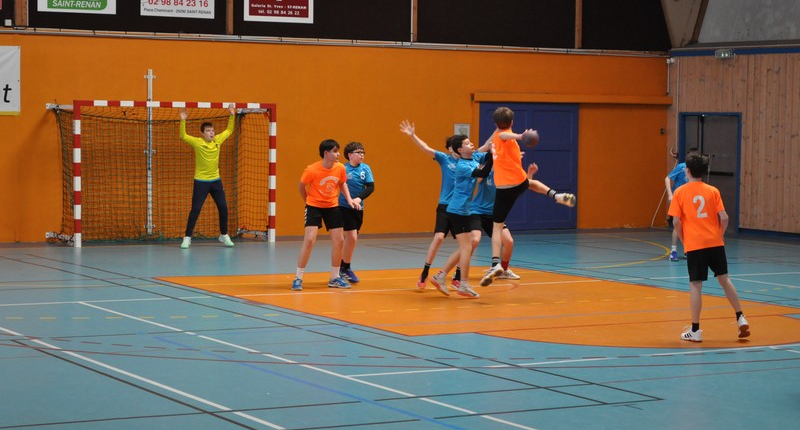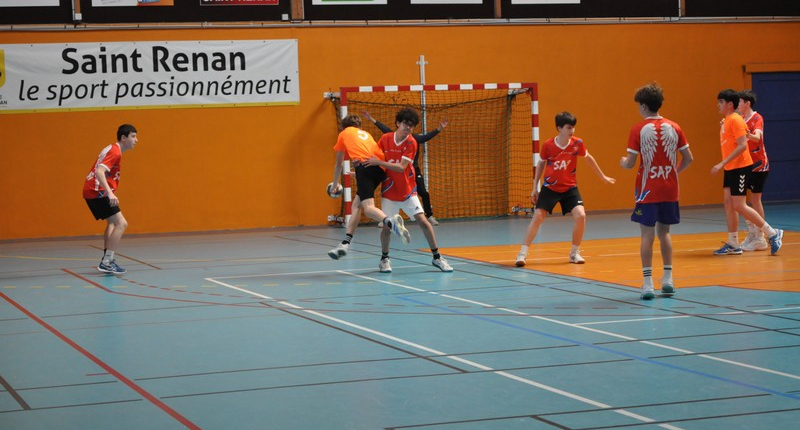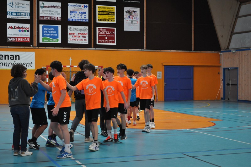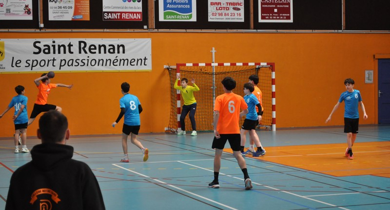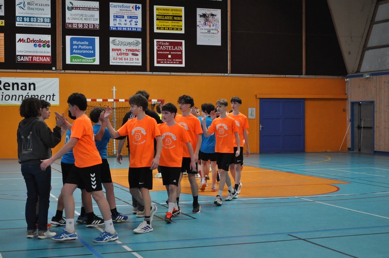 L’après-midi débute dans une nouvelle salle, offrant d’excellentes conditions de jeu. Mais le niveau monte encore d’un cran. Face à l’équipe de Landivisiau Saint-Joseph de la Salle, nos handballeurs affrontent un adversaire plus expérimenté et s’inclinent logiquement 7 à 17.