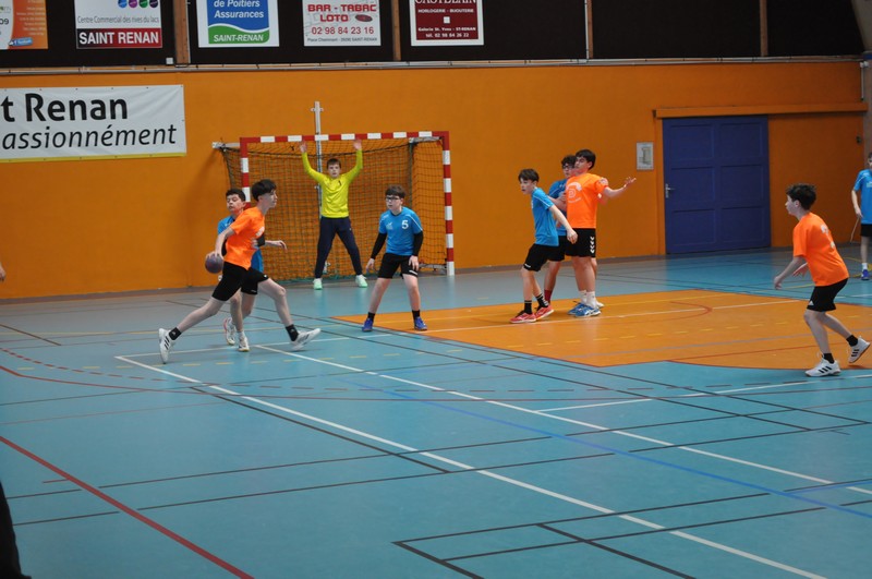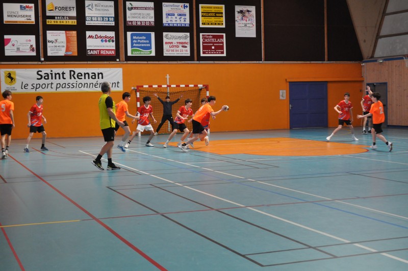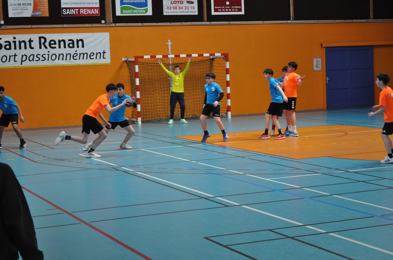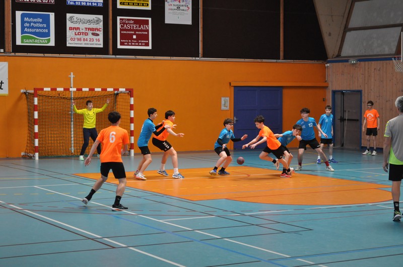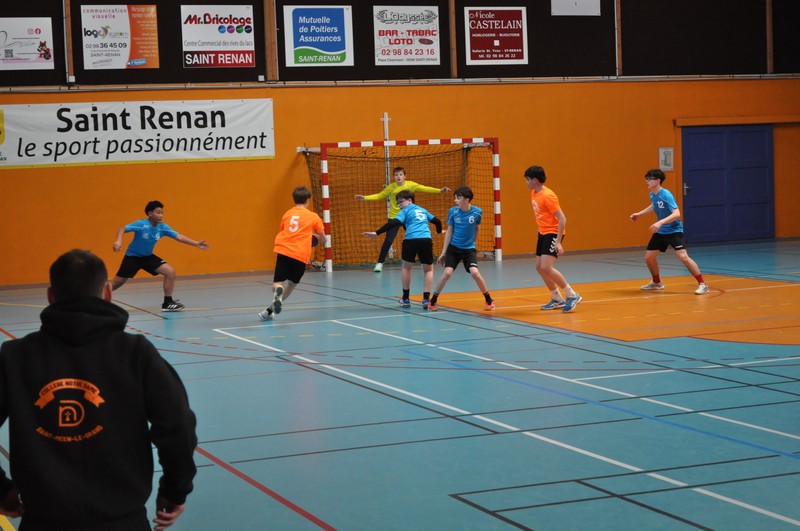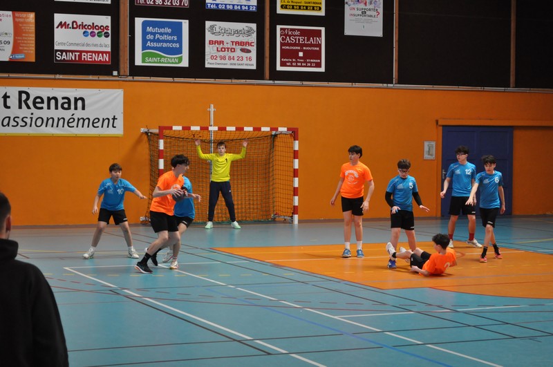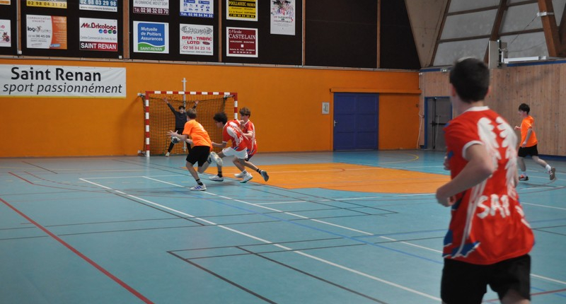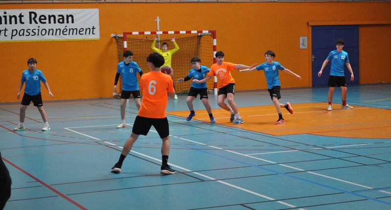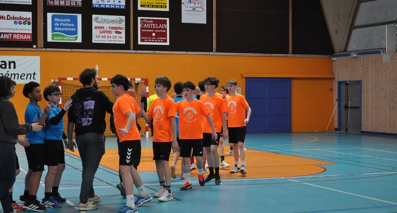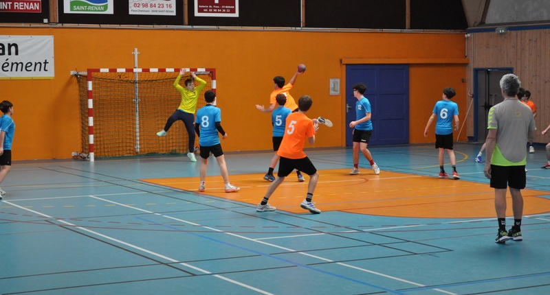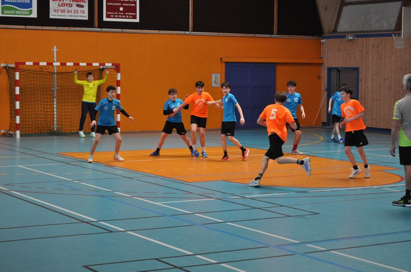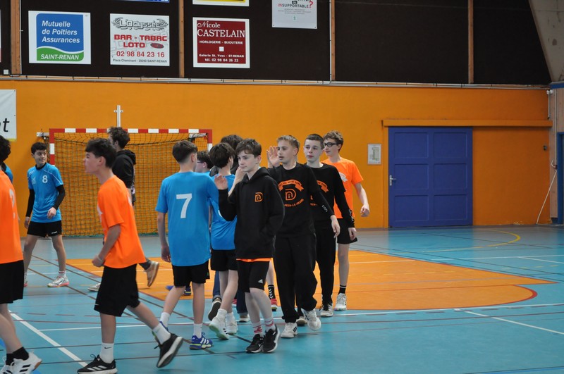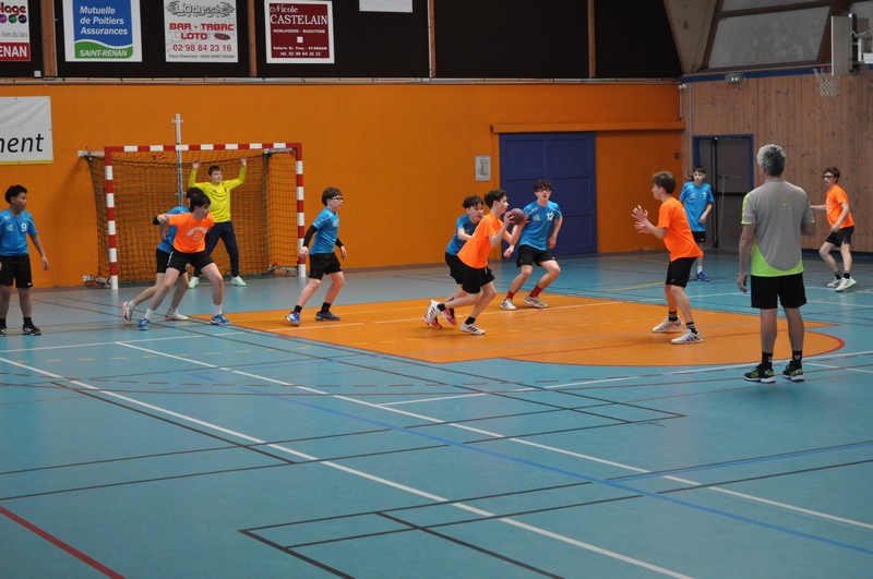 L’après-midi débute dans une nouvelle salle, offrant d’excellentes conditions de jeu. Mais le niveau monte encore d’un cran. Face à l’équipe de Landivisiau Saint-Joseph de la Salle, nos handballeurs affrontent un adversaire plus expérimenté et s’inclinent logiquement 7 à 17.