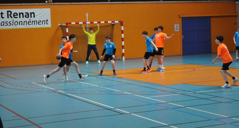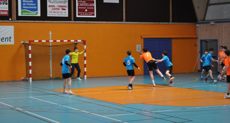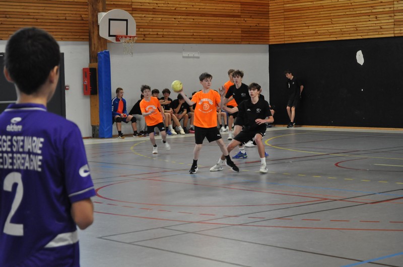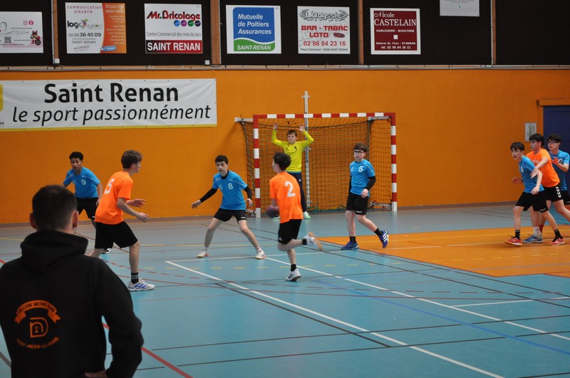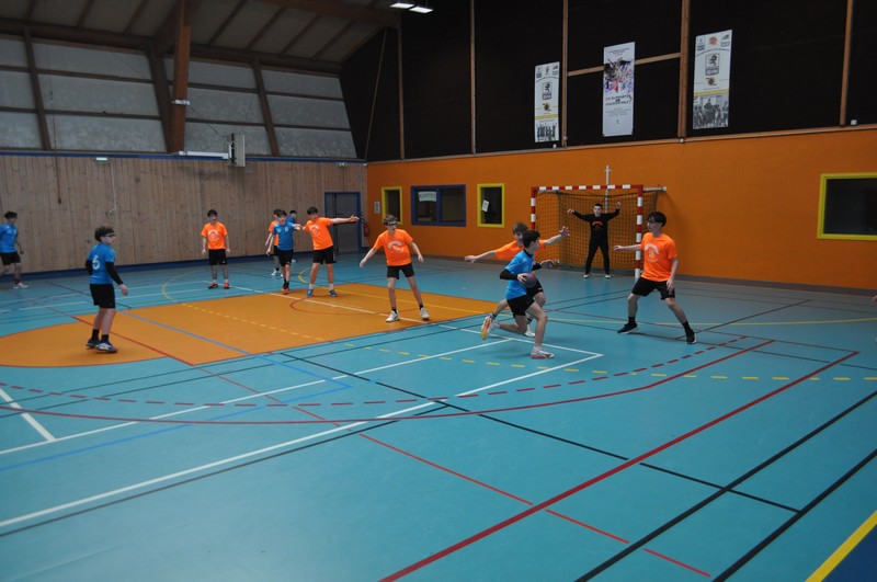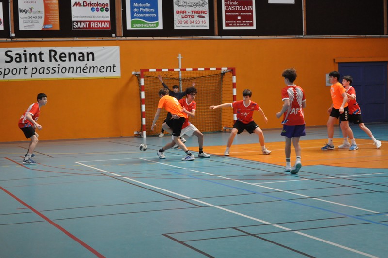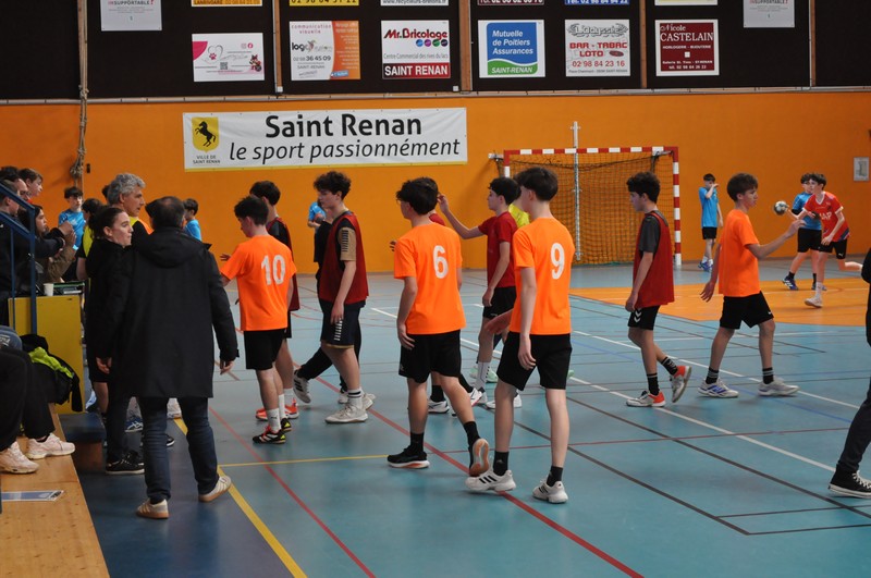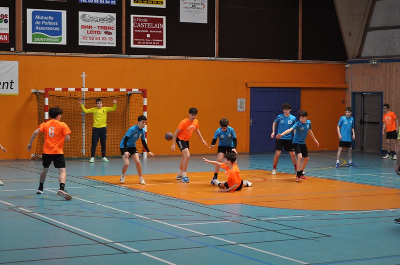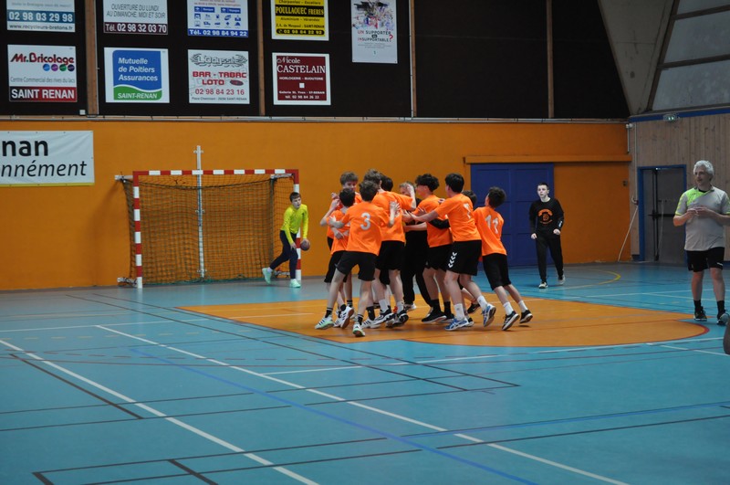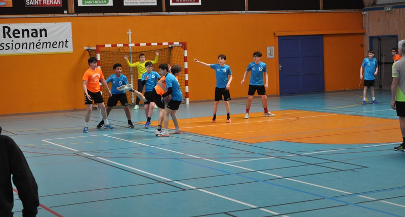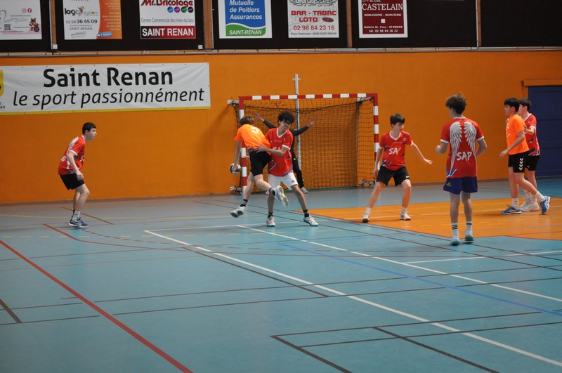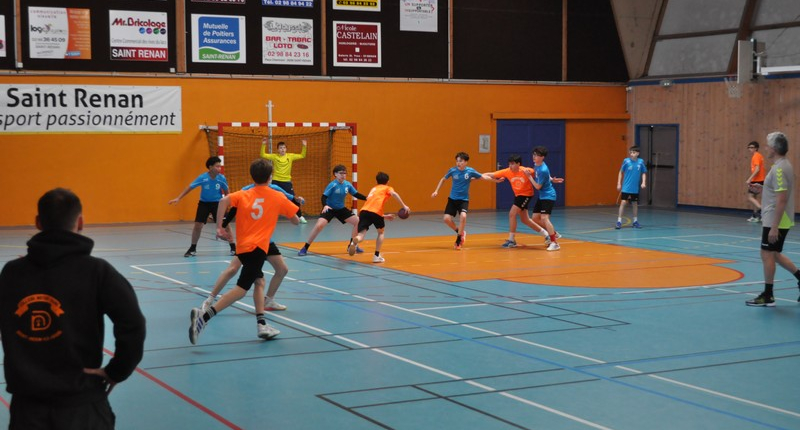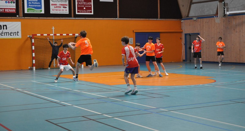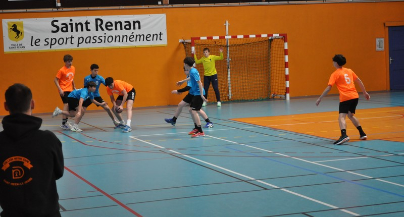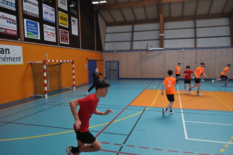 L’après-midi débute dans une nouvelle salle, offrant d’excellentes conditions de jeu. Mais le niveau monte encore d’un cran. Face à l’équipe de Landivisiau Saint-Joseph de la Salle, nos handballeurs affrontent un adversaire plus expérimenté et s’inclinent logiquement 7 à 17.