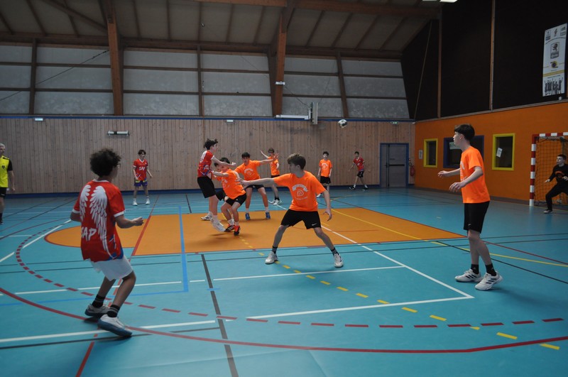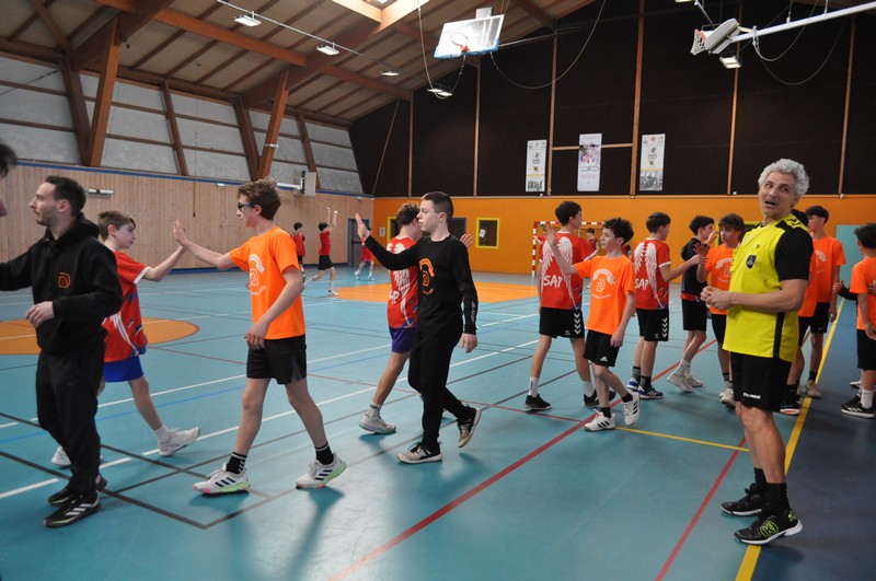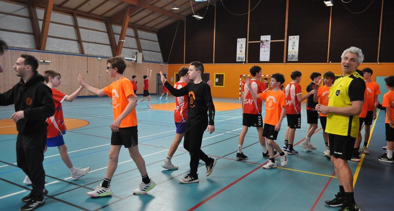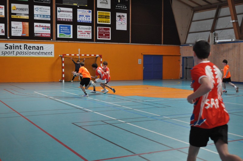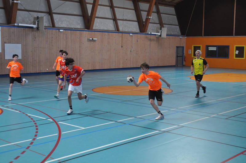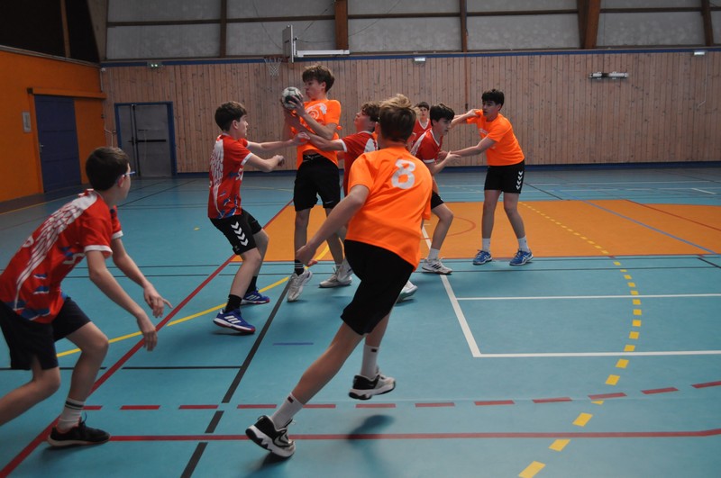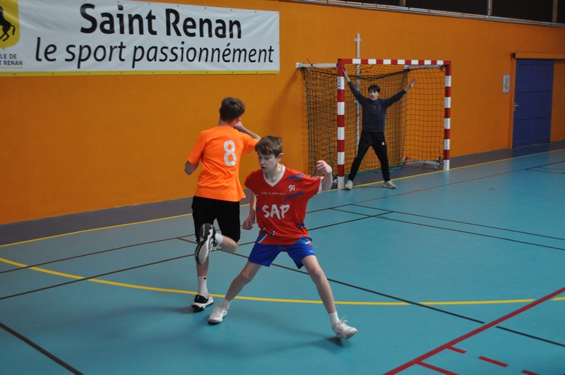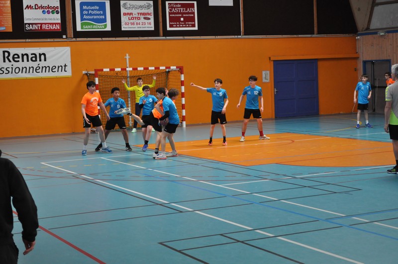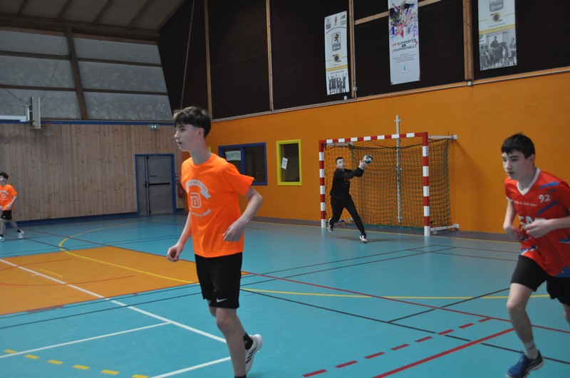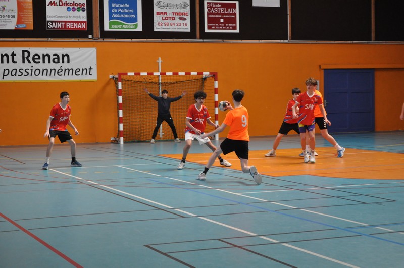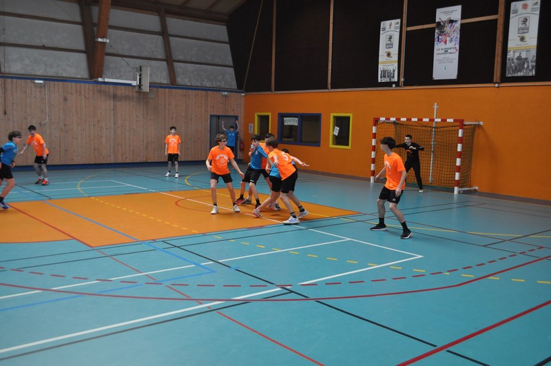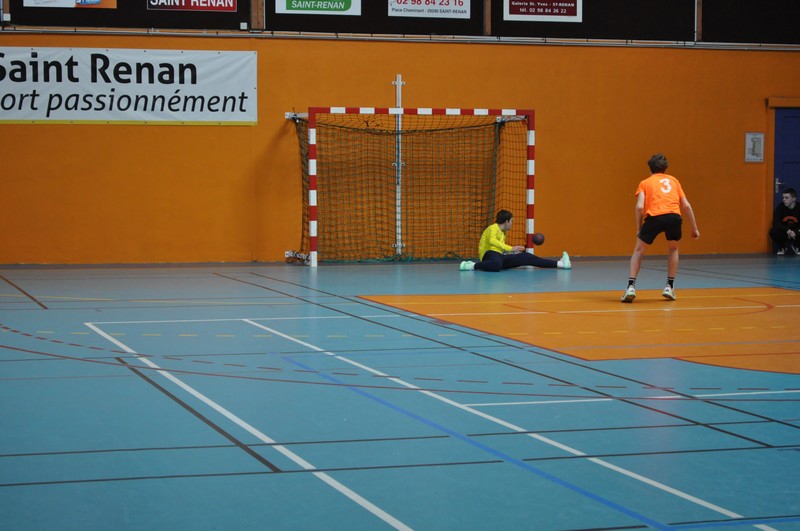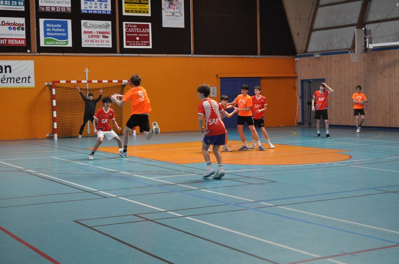 L’après-midi débute dans une nouvelle salle, offrant d’excellentes conditions de jeu. Mais le niveau monte encore d’un cran. Face à l’équipe de Landivisiau Saint-Joseph de la Salle, nos handballeurs affrontent un adversaire plus expérimenté et s’inclinent logiquement 7 à 17.